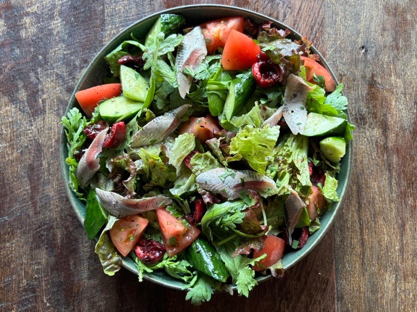 イワシとアメリカンチェリー、夏野菜のサラダ