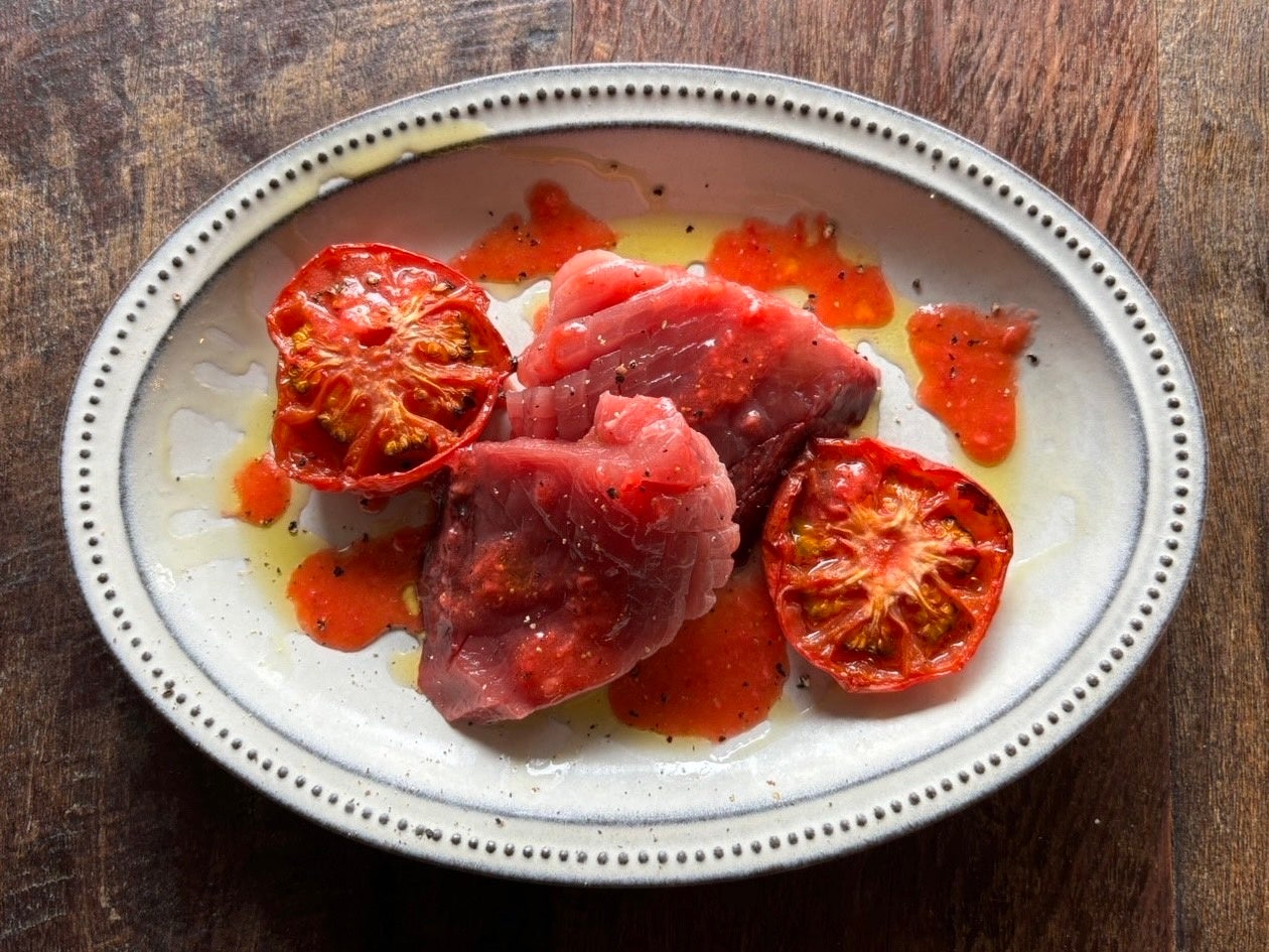 キメジマグロとローストトマト、いちじくのサルサ