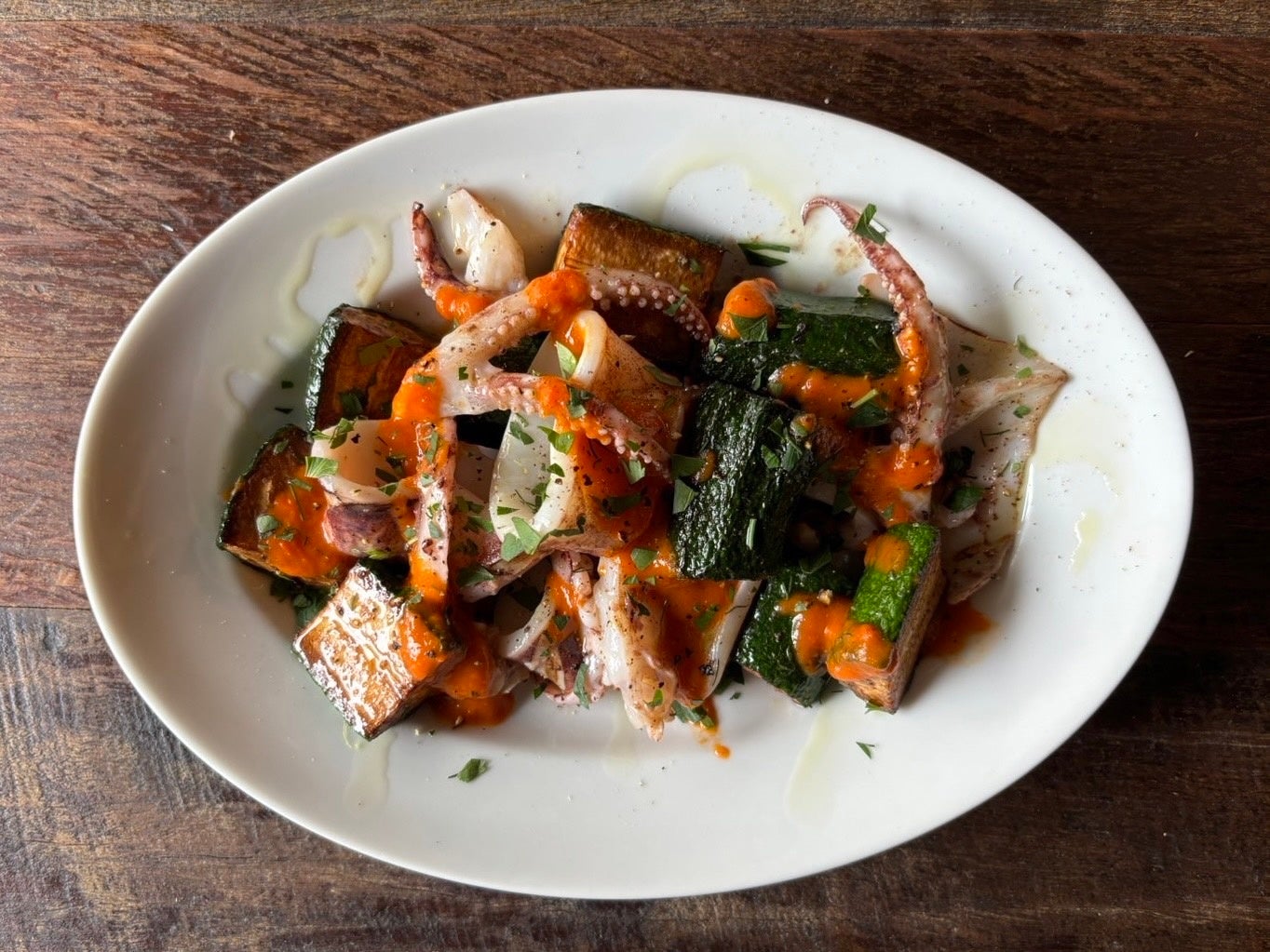 ズッキーニとスルメイカの温かいサラダ
