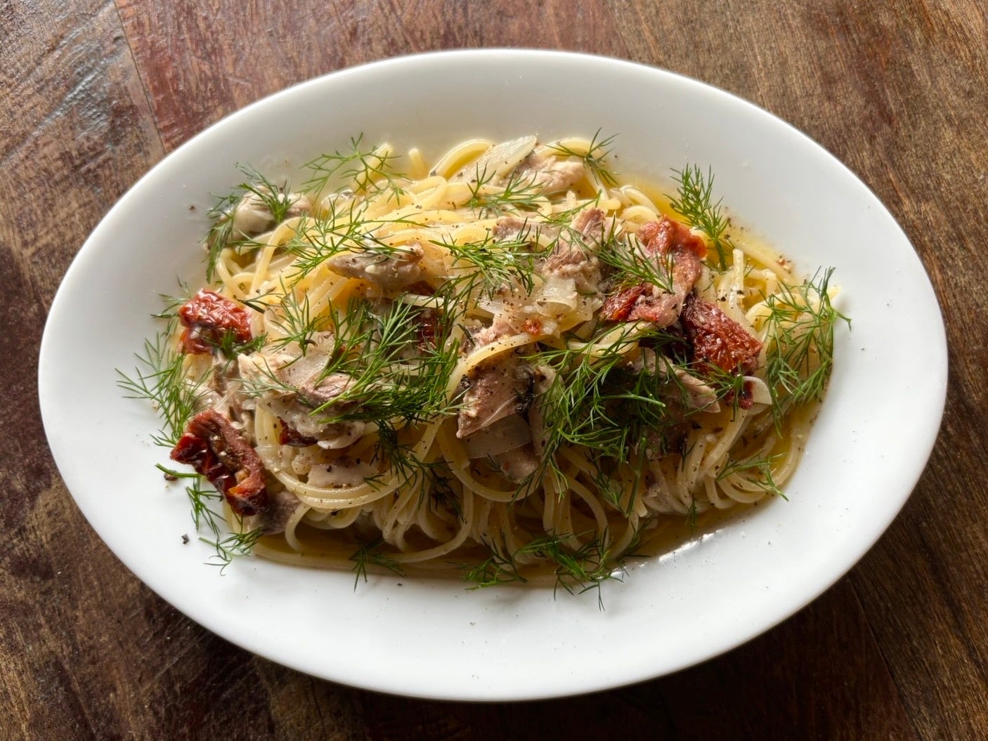 真いわしとセミドライトマト、フェンネルのパスタ