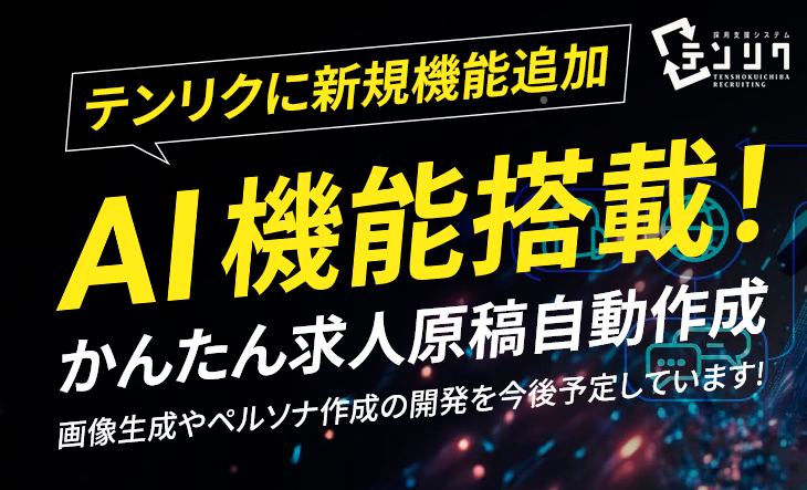 また、採用支援システム「テンリク」のAI機能は今後も機能強化を予定しており、求人広告用の「AI画像生成」「ペルソナ作成」などを実装予定です。