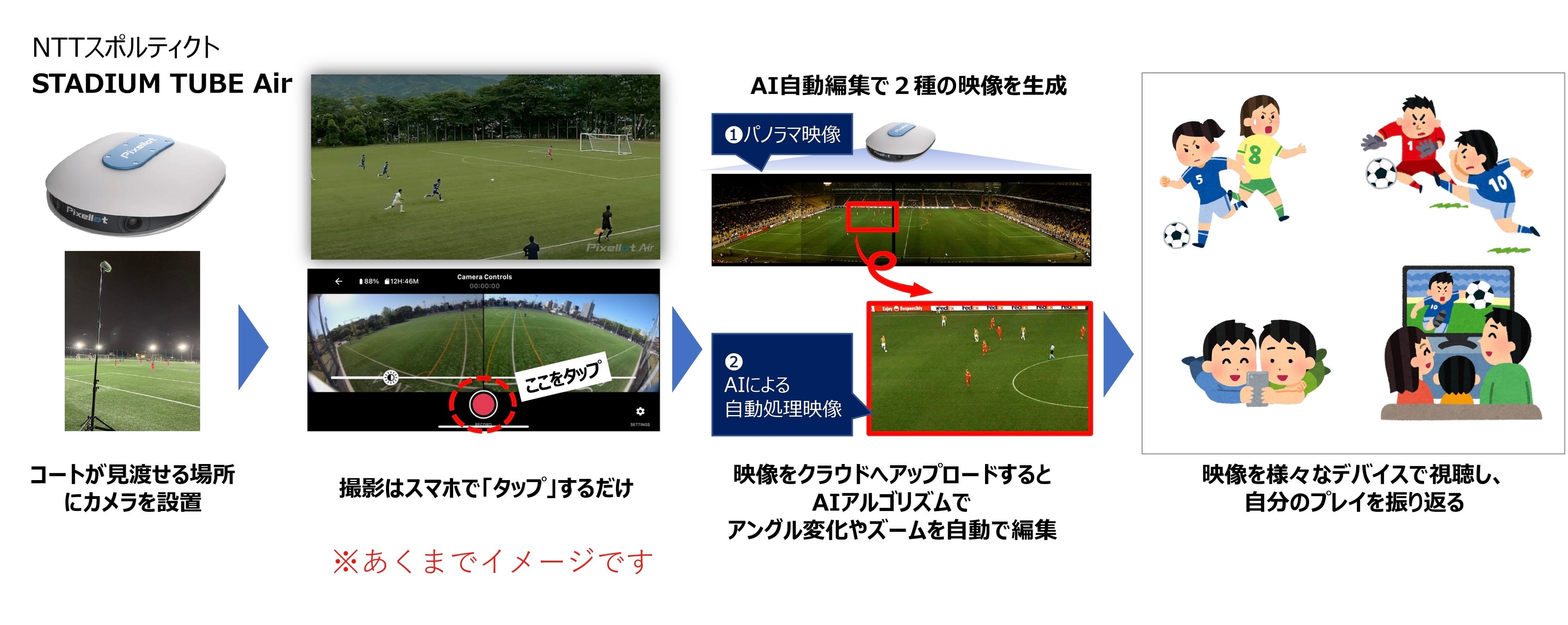 ※STADIUM TUBE は、NTTSportictが提供する圧倒的低コストを実現した世界トップクラスのAIスポーツ撮影ソリューションです。https://stadiumtube.com/lineup/#feature