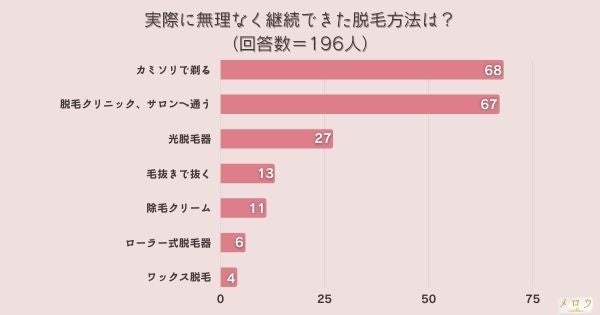 <調査結果>実際に無理なく継続できた脱毛方法は?1位『カミソリで剃る』!