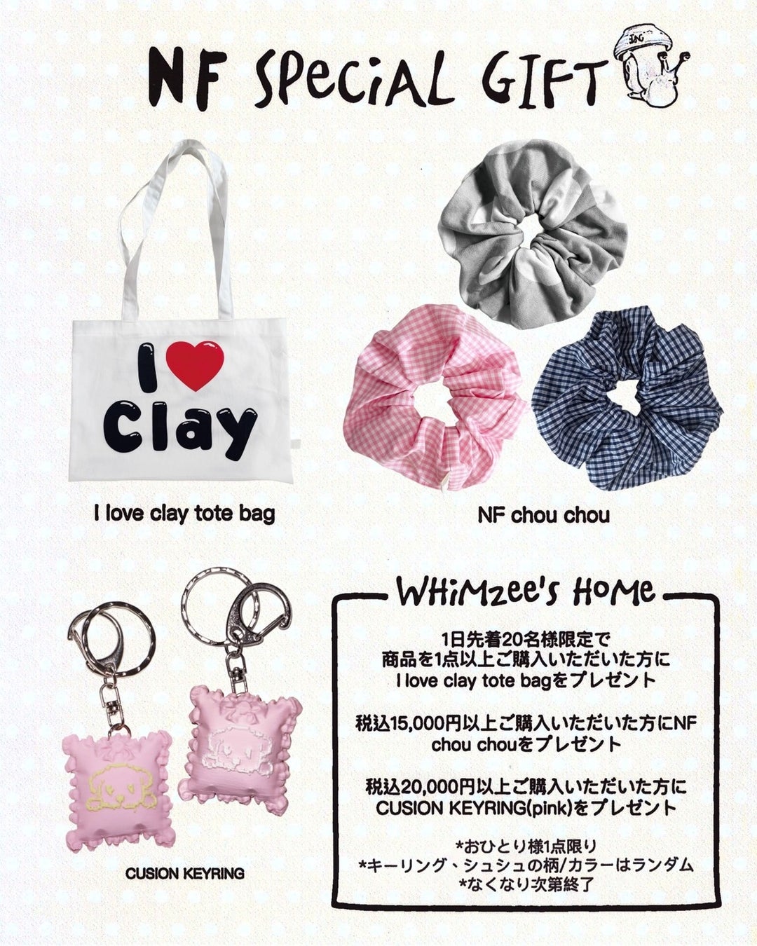 ①1日先着20名様限定で商品を1点以上ご購入いただいた方にI love clay tote bagをプレゼント