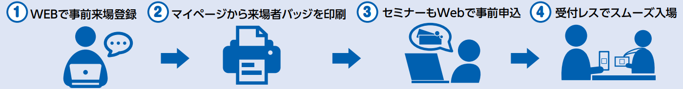 登録後にHPから来場者証を印刷いただけます。ご持参いただければ、受付を通らずスムーズな入場が可能です。