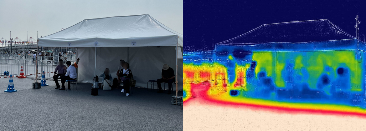 SPACECOOLは、当社が研究開発・販売を行う、宇宙に熱を逃がすことでゼロエネルギーの冷却を実現する新素材です。建物の省エネルギー化や、ヒートストレス軽減による生産性向上などを目的に、国内外で導入が拡大しています。大阪・関西万博においては、同素材を生地に採用したSPACECOOLテントとSPACECOOL日傘を、来場者や運営スタッフの熱中症対策として協賛提供しました。