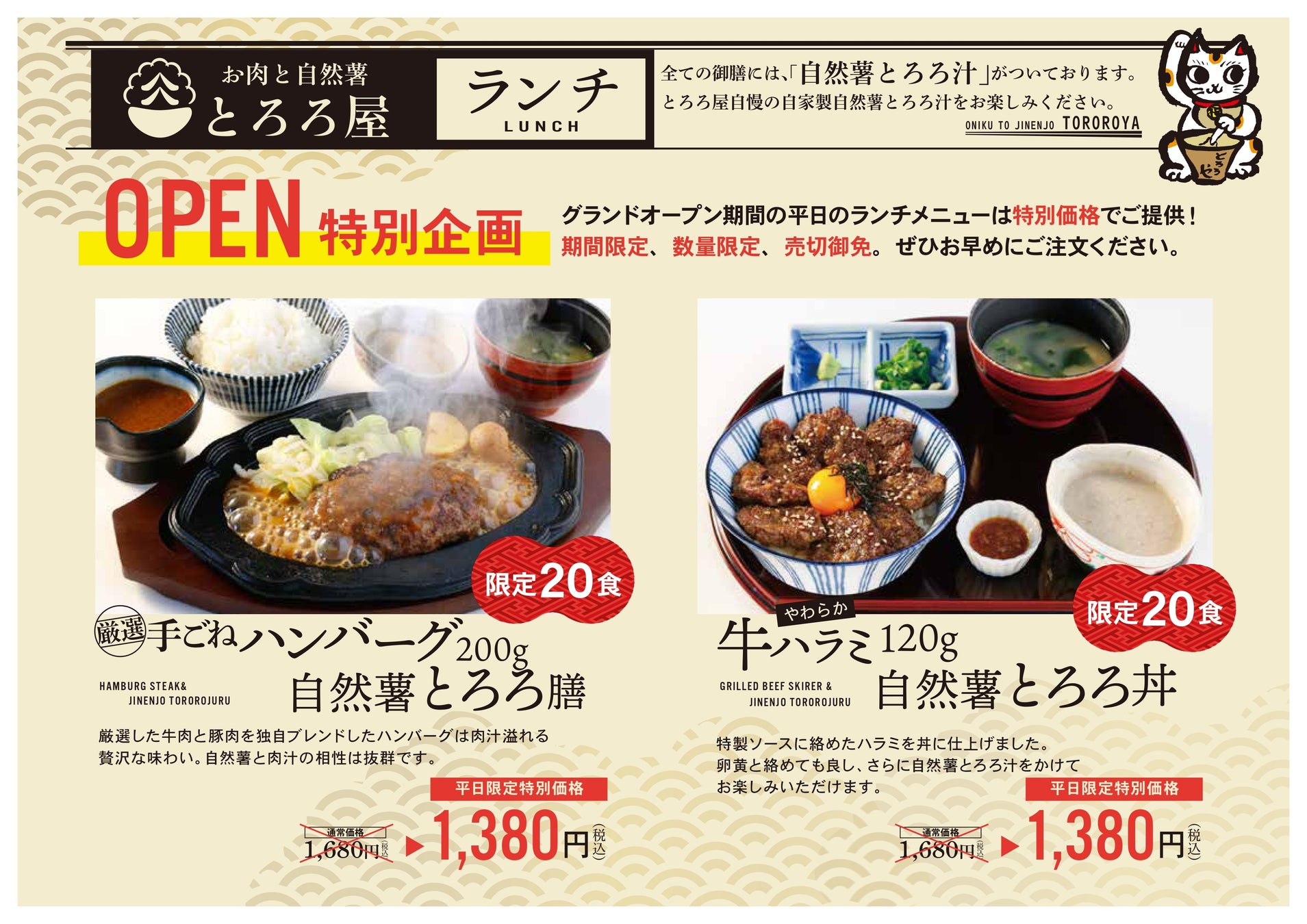 グランドオープン期間は平日限定特別価格メニューキャンペーンも実施予定