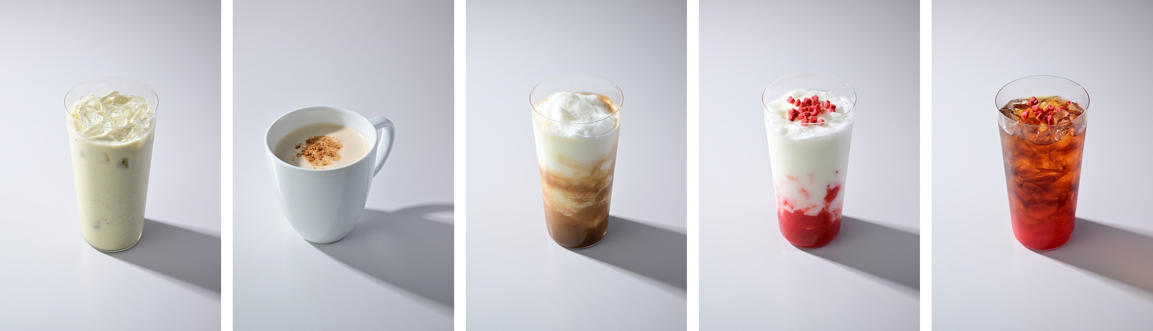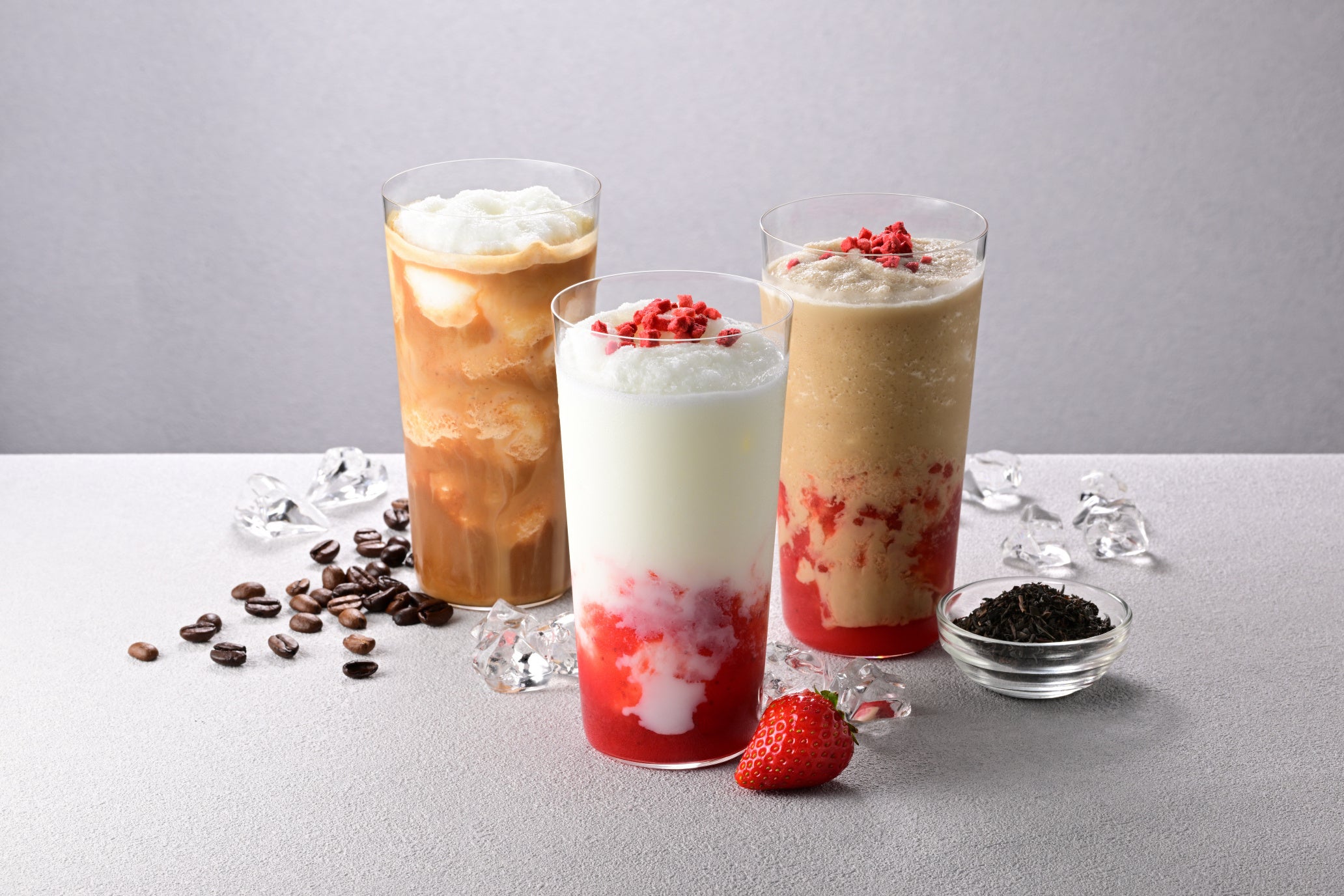 「次世代カフェ・ド・クリエ」では、「ジャスミンティーラテ」「チャイティーラテ」など6種類のラテ系ドリンクに加え、フローズンドリンクの「ソルベージュⓇエスプレッソ」や、アレンジティーの「アールグレイ&ストロベリーティー」など、約20品をラインアップしました。