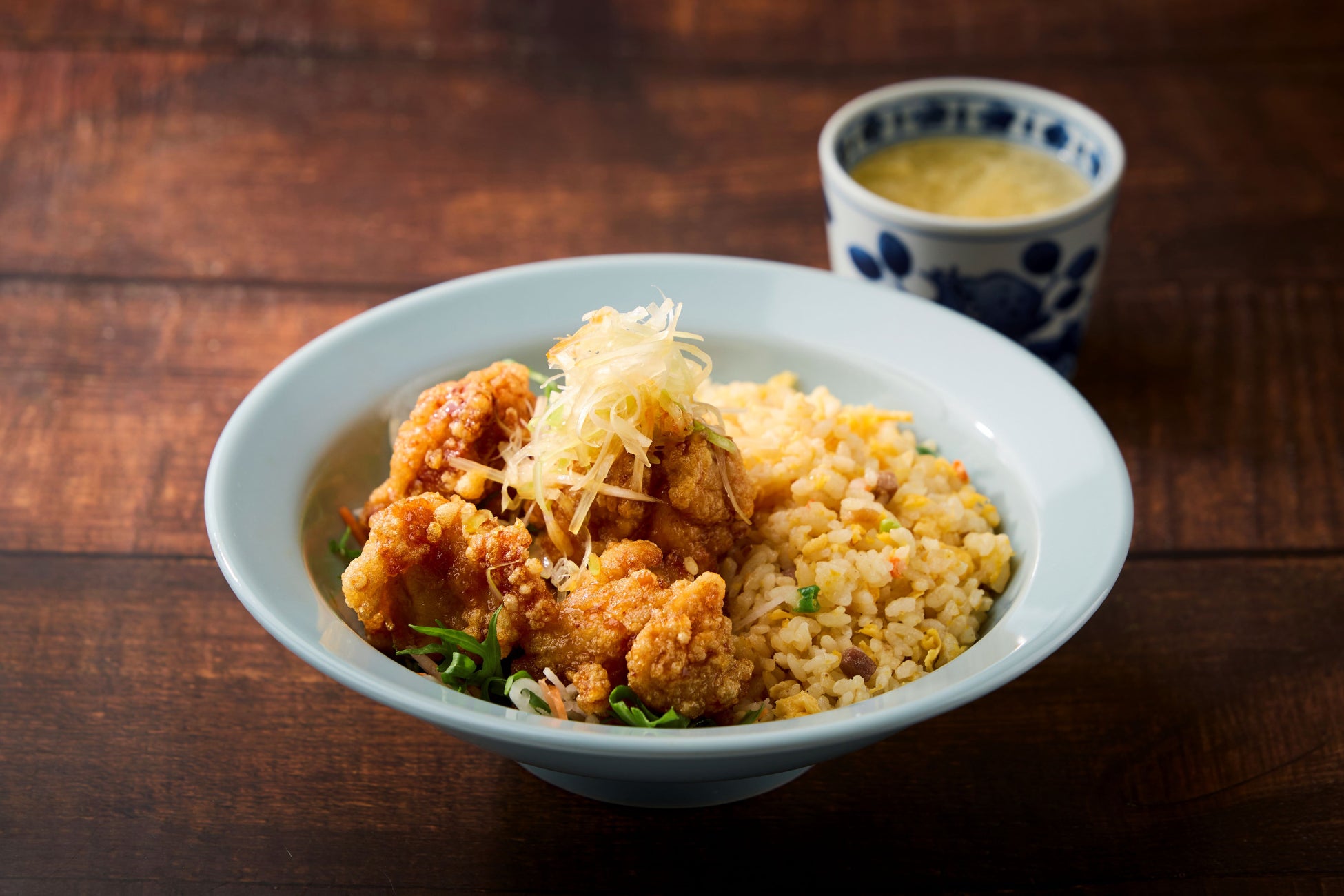 香ばしく炒められた五目炒飯に、海老チリ・油淋鶏・麻婆豆腐をトッピングして満足度アップ。