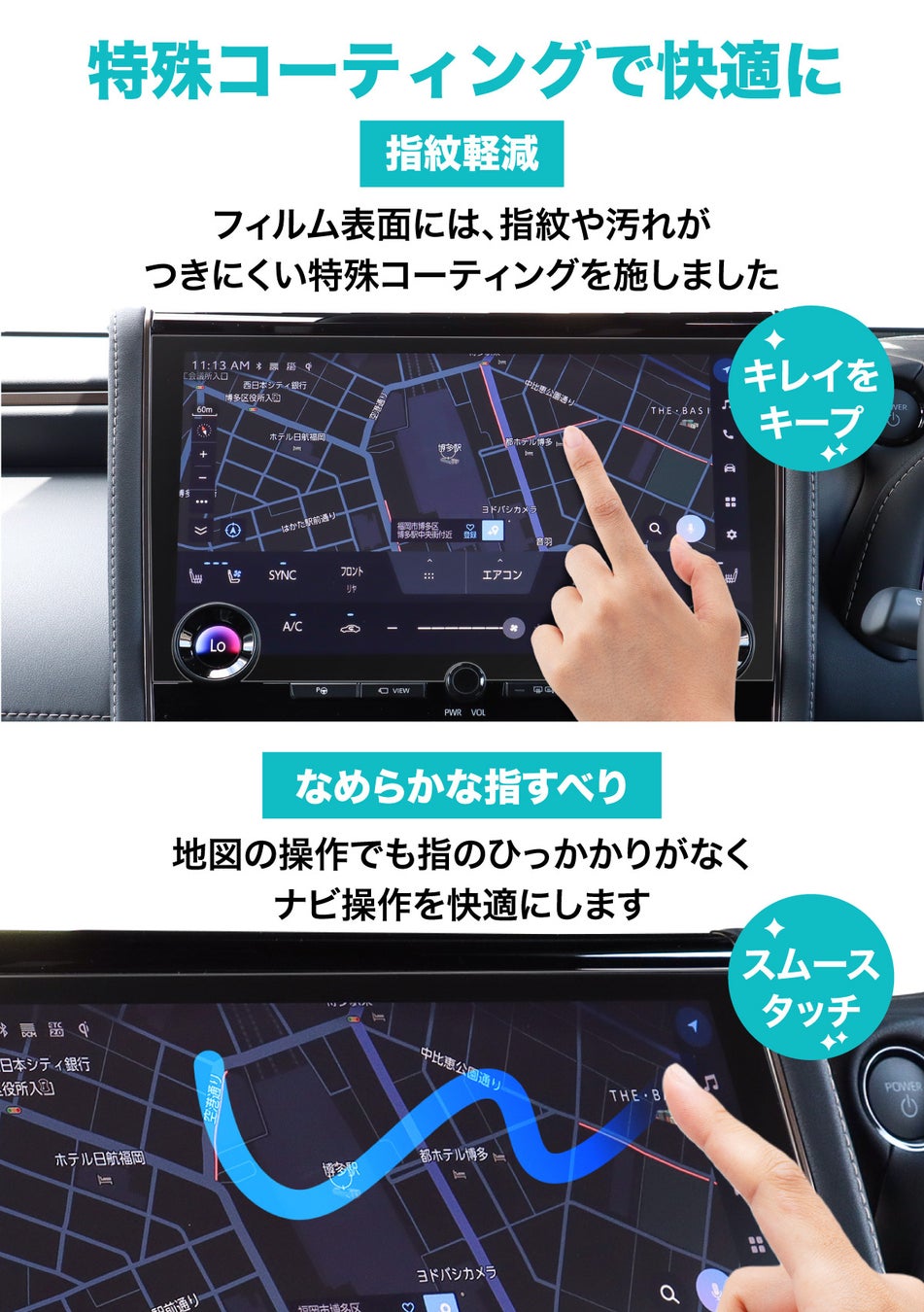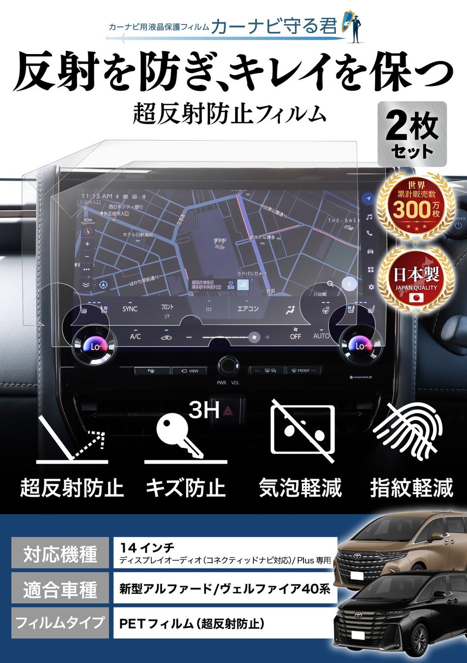 新型 アルファード / ヴェルファイア 40系の14インチカーナビ画面を傷や指紋から守る便利グッズ「カーナビ守る君 保護フィルム 超反射防止タイプ」内装カスタムにおすすめのアクセサリー。納車前の準備に