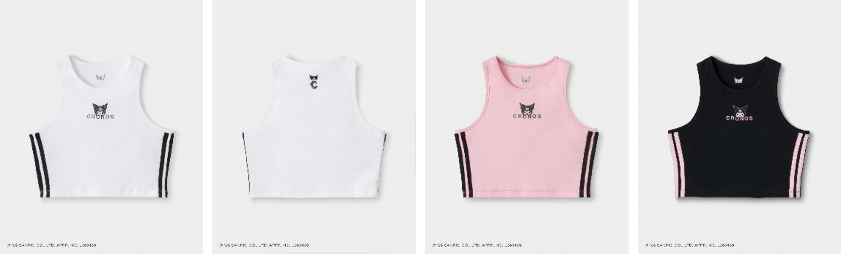 本コラボレーションでは、いたずら好きで憎めないキャラクター「バッドばつ丸」とクールな第一印象とキュートな一面のギャップが魅力的な 「クロミ」とのコレクションを展開。UPF50+の紫外線カット機能に加え、吸水速乾性とクーリング性を兼ね備えたTシャツをはじめ、CRONOSらしいシャープなデザインで表現したスキニーパンツ、日常使いからトレーニングシーンまで対応するソックス、ミニマルなシルエットのタンクトップ、機能性とデザイン性を兼ね備えたレギンス、さらに高伸縮リブ素材を採用したロングワンピースなど、多彩なラインアップを揃えました。CRONOSの機能性とキャラクターの遊び心が融合した、特別感のあるコレクションとなっています。