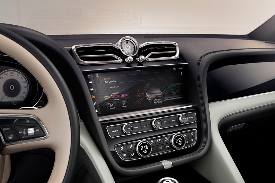 これらの新しいドライバーサポートシステムの多くは、ドライバーのインストルメントパネルに表示されます。このインストルメントパネルには、3種類の新しい文字盤スタイルと、ベンテイガモデル専用のユニークなスタイルが追加されています。新しいドライバー・インストルメント・パネルには、前方道路のリアルタイム視覚化し、検出された物体を3D描写(インタラクティブなエクステリア・ライトを備えたベンテイガの画像を含む)、また、ドライバー支援機能のステータスも表示されます。