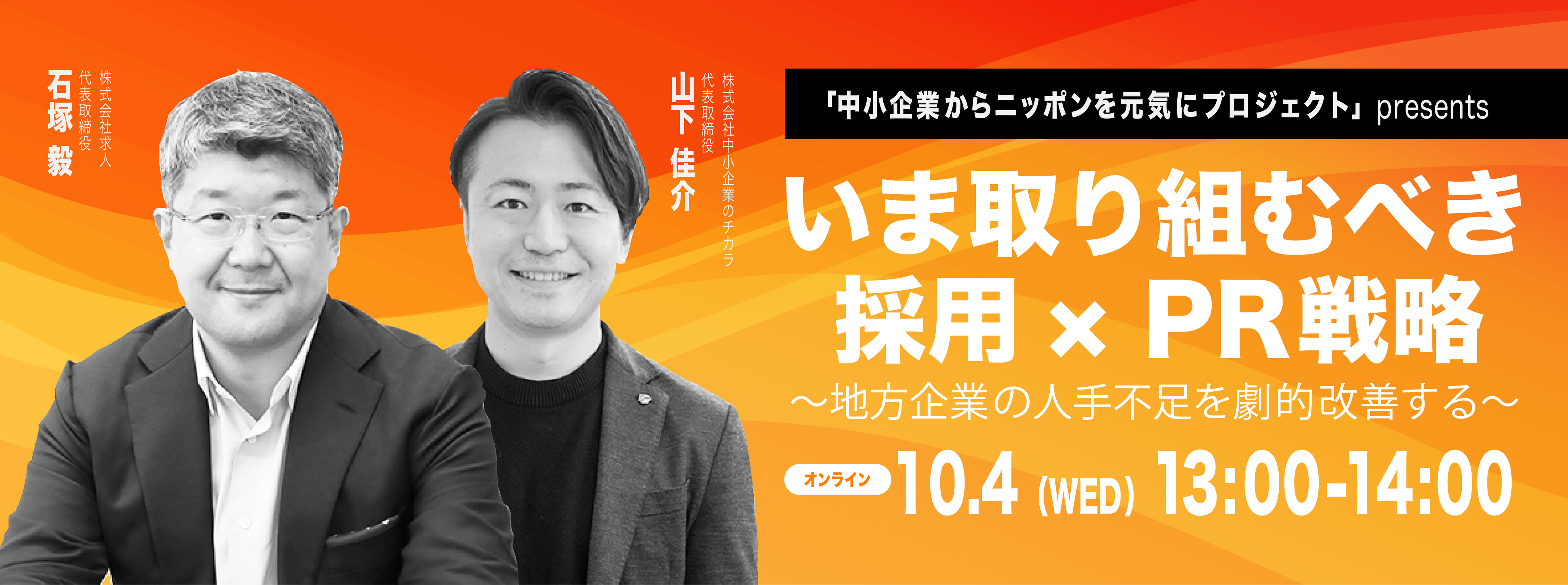 10/4 13:00~開催|地方の人材不足を劇的に改善させる方法”中小企業採用改善のカリスマ”が語る!
