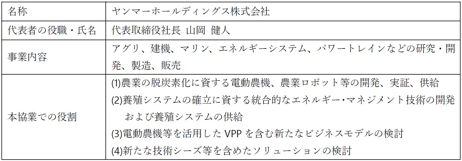 具体的には、基本合意書に基づき、米・日本酒づくりにおける電動設備の導入、導入した電動設備および陸上養殖システムでのクリーンエネルギー活用による脱炭素化、さらに農業ロボット等の技術導入を通じたDX、洋上風力を含めたクリーンエネルギーと電動農機等を組み合わせたVPP※事業などを展開し、農林水産業全体のGXを推進します。