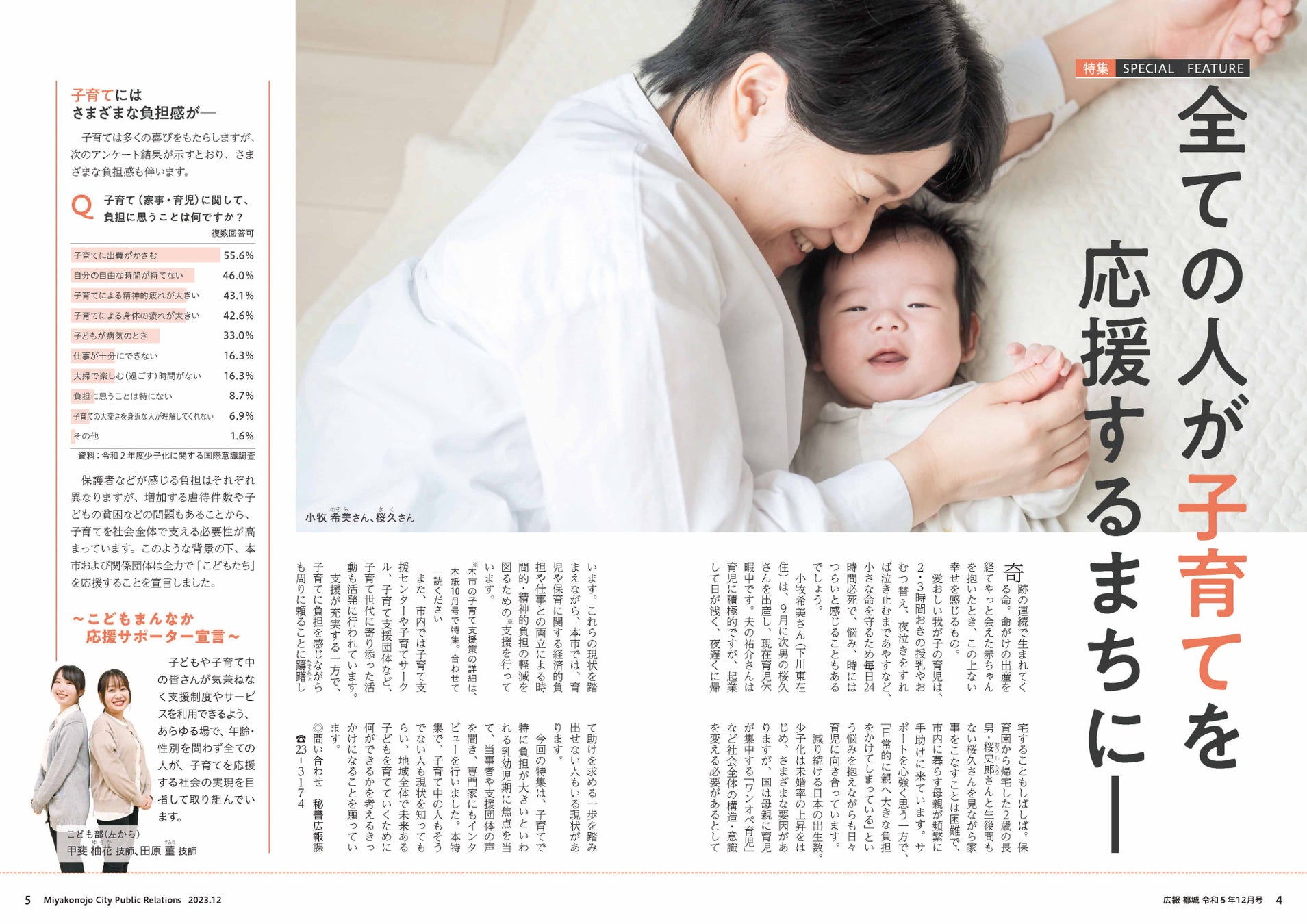 ・企画・構成・文章・デザインとすべてに高水準の広報紙。特集のテーマ「子どもを産み・育てる」ことの大切さや宮尾の上司の現状や行政施策が、様々な切り口で丁寧に取材され分かりやすく伝わる記事となっている。続く「障害者雇用」「移住定住」も興味を持って読み込める記事となっており、作り手の思いが感じられる。