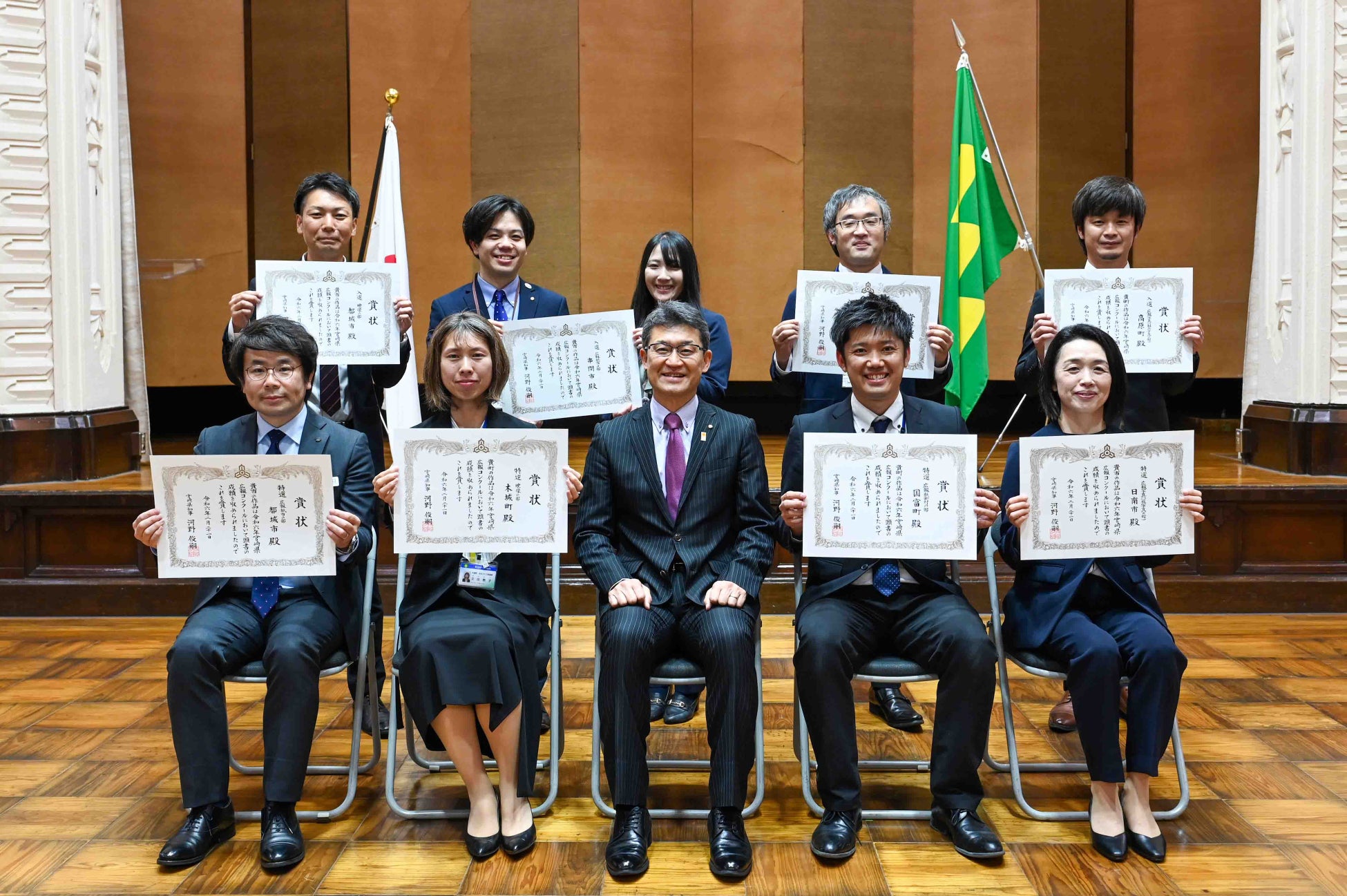 宮崎県内市町村の広報活動の向上を目的に、令和5年1月から12月までの間に発行・発表等された広報作品について優秀な作品(団体)が表彰される令和6年宮崎県広報コンクール。今回、都城市が広報紙(市部)部門で特選、広報写真部門(一枚写真部)、広報写真部門(組み写真部)および映像部門で入選を受賞し、2月21日、宮崎県庁で表彰を受けました。