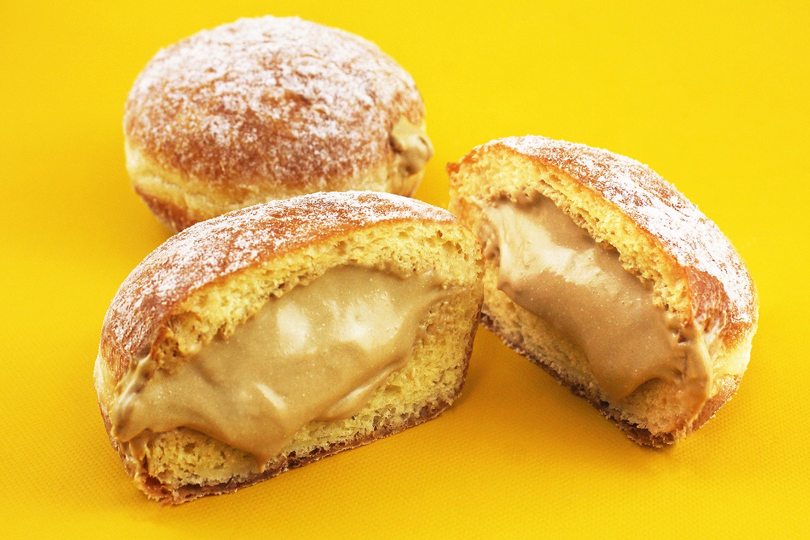 森永製菓株式会社の人気商品「森永ミルクキャラメル」とコラボレーションした生ドーナツが新登場!森永ミルクキャラメルの味わいを再現したクリームをたっぷりと詰めこみました。