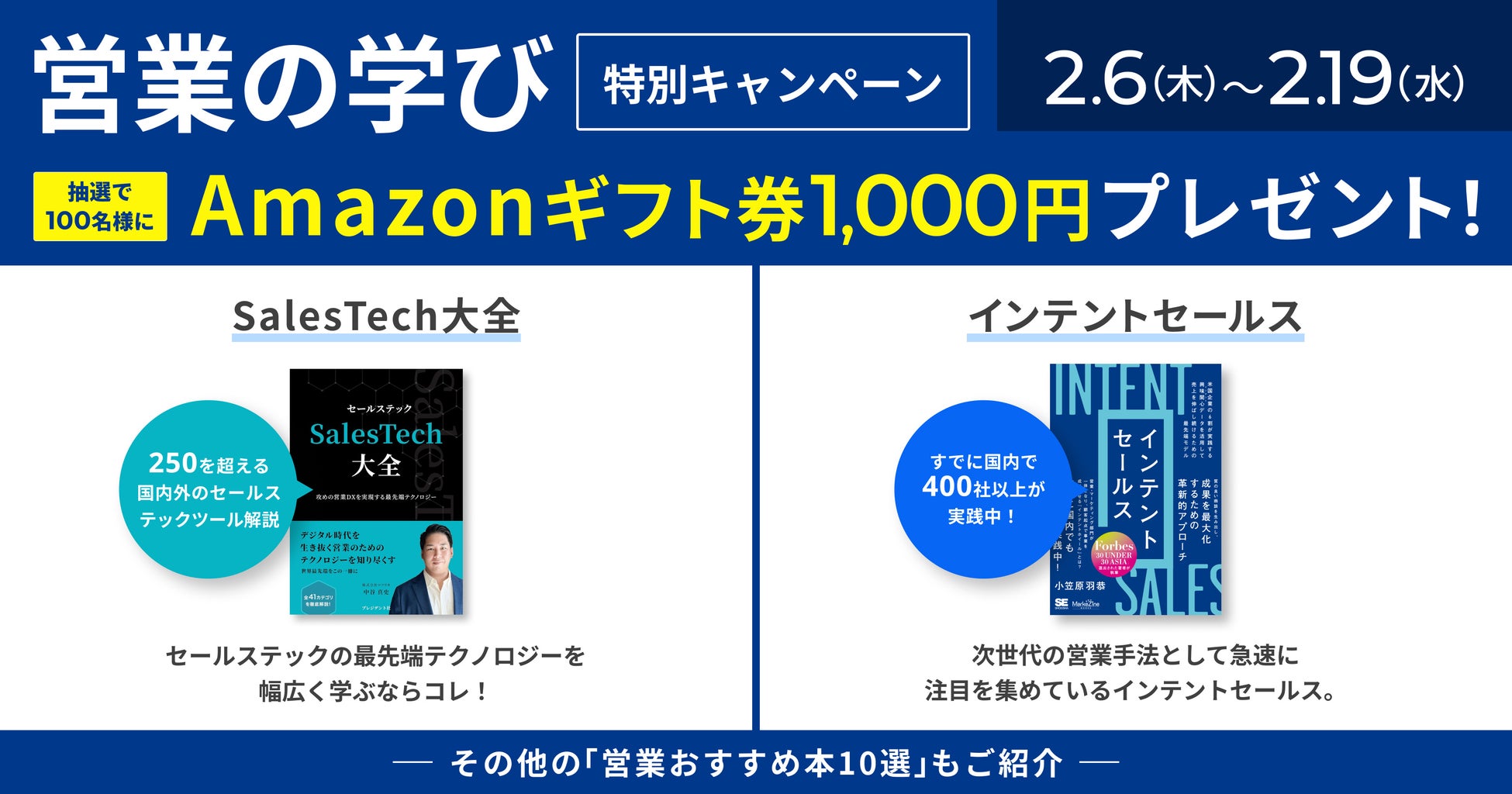 また、2月は年度末を控え、新年度に向けた営業戦略の見直しや目標設定を行う重要なタイミングと言えます。こうした時期に、営業に携わるすべての方が自身や自組織に適した営業手法を学び、スキル向上を図る機会を提供したいという想いから、昨年9月に書籍『SalesTech大全』を発売し、営業チームの変革を支援するマツリカとともに本キャンペーンを開催する運びとなりました。