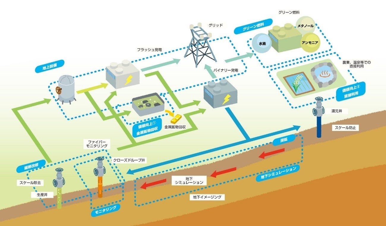 インドネシアにおける地熱マスタープラン策定等調査事業: 地熱発電の開発を進めるインドネシアにおいて、新技術の共有、技術・経済性スタディの結果を基にロードマップを作成するとともに、地熱事業者の意見を取り入れ、同国のエネルギー鉱物資源省が策定する地熱マスタープランの策定に繋げる調査を実施。