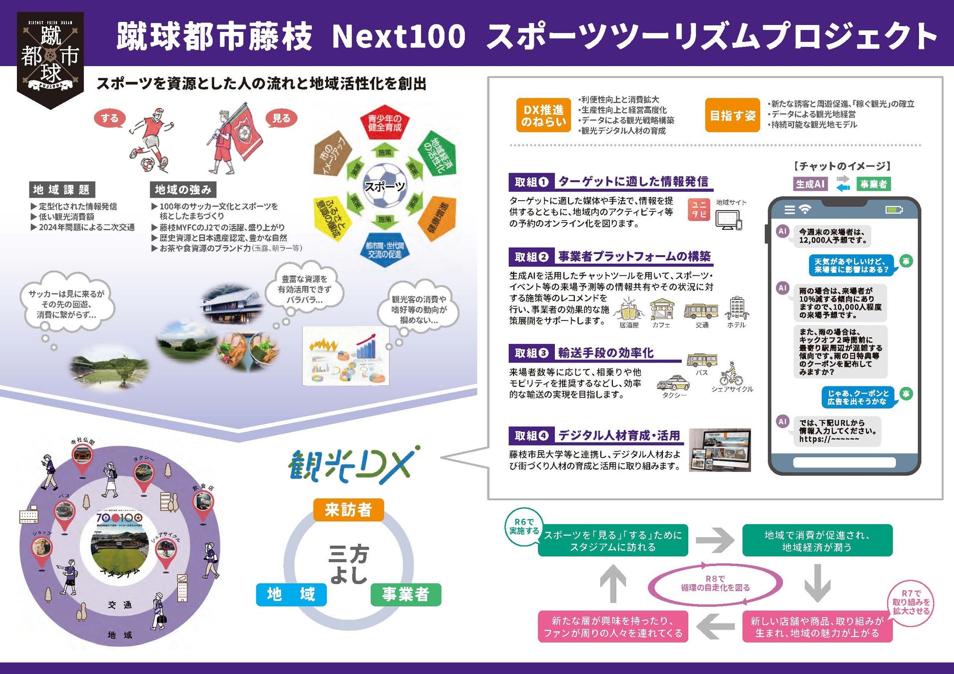 ・事業者プラットフォームでは、生成AIの活用により藤枝MYFC ホームゲームやスポーツ大会等の来場者予測等の情報共有、およびそれらのデータや状況に対して事業者の収益最大化に繋がる施策の提案等を行い、持続可能な“稼ぐ観光スタイル”確立に繋げます。