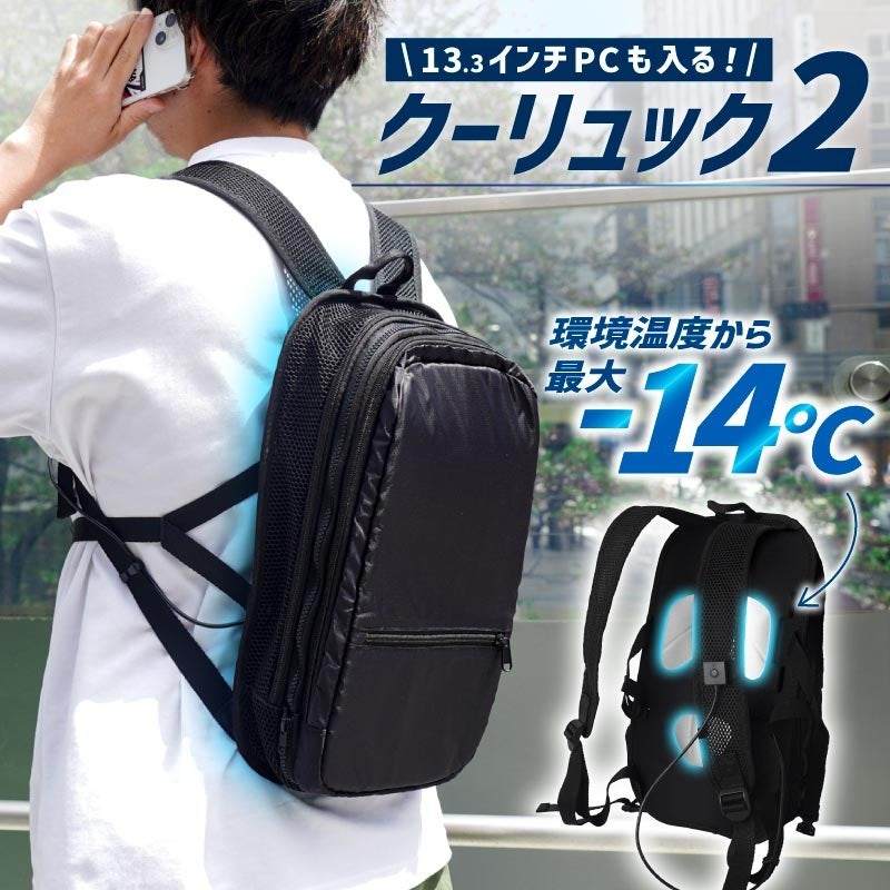 夏の暑さを和らげたい。冷却グッズを違和感なく使いたい。普段の街歩きから、通勤通学、サイクリング、アウトドアなどにも使える「クーリュック2」です。