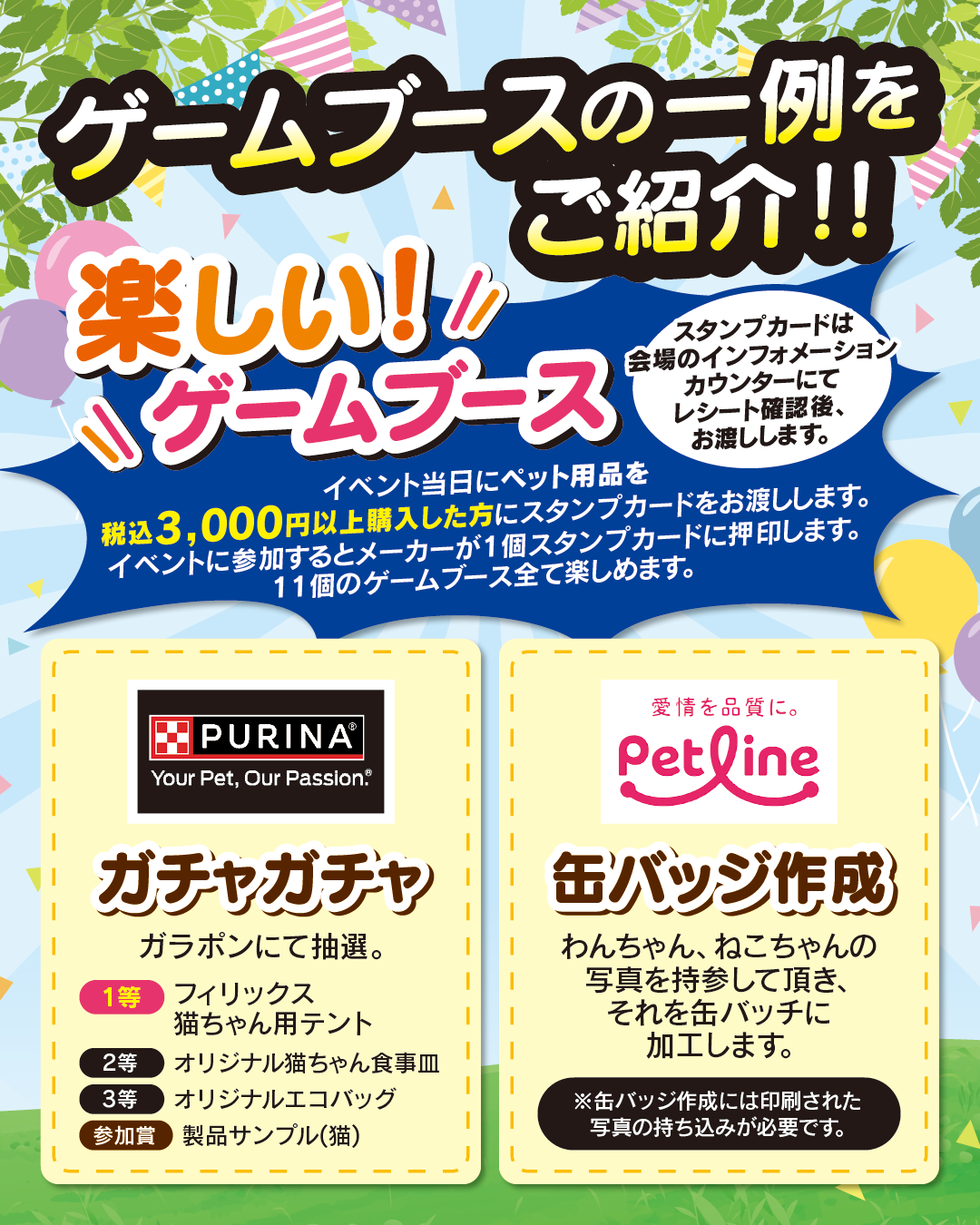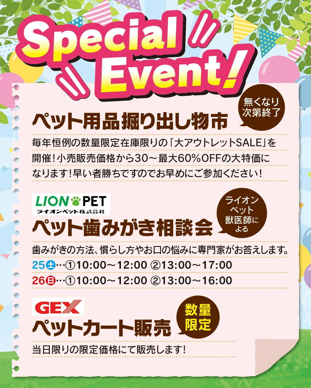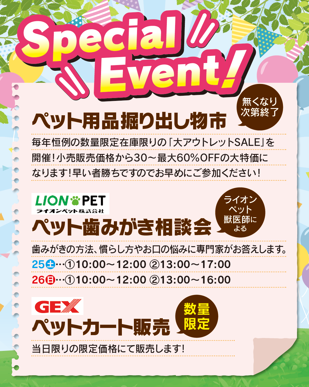 ・スタンプラリー企画 ・ペットシーツつかみ取り ・獣医師来店 ペット歯みがき相談会