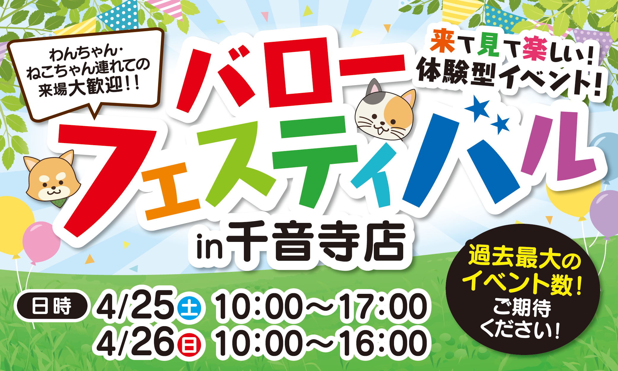 「バローフェスティバルin 千音寺店」4月25日・26日の2日間限定開催~ペット・アウトドア・掘り出し物市まで家族で楽しめる特別イベント~