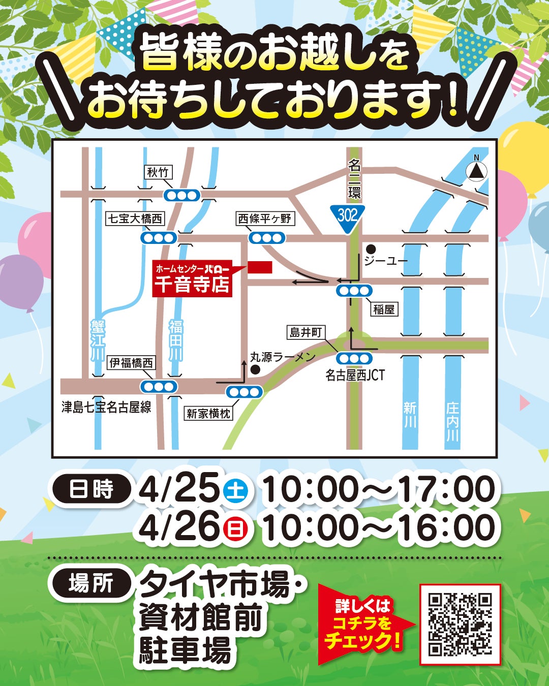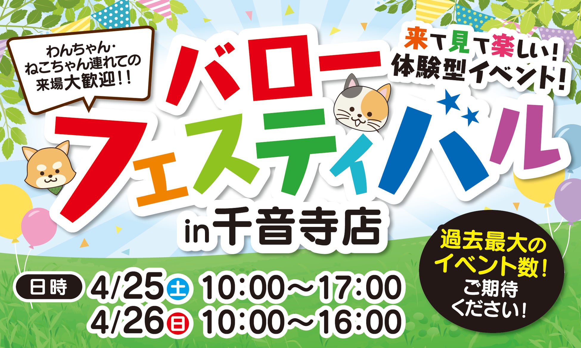 ホームセンターバロー千音寺店(名古屋市中川区)にて、2026年4月25日(土)・26日(日)の2日間、「バローフェスティバル in 千音寺店」を開催いたします。