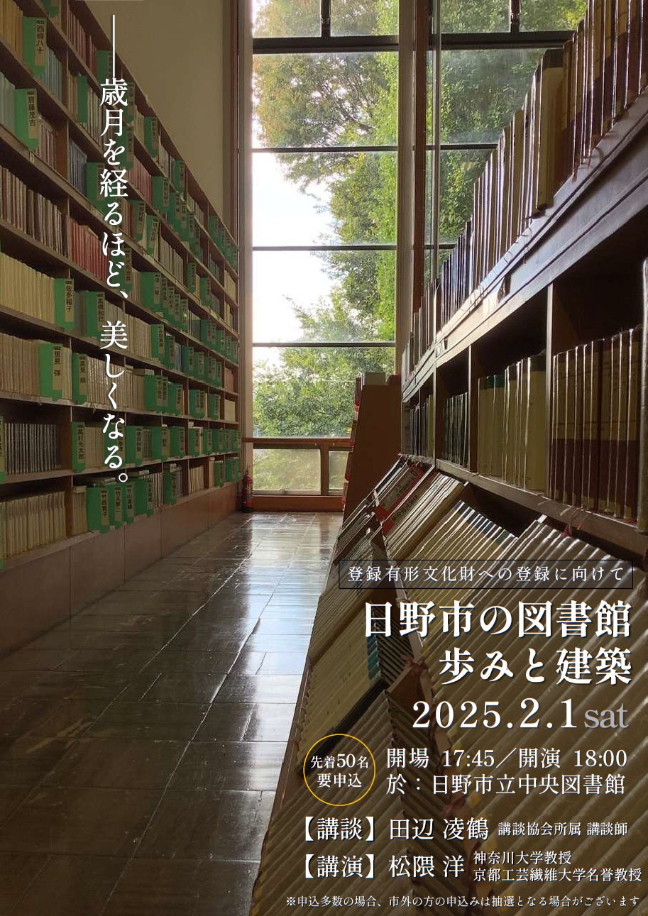 講演会「日野市の図書館 歩みと建築~登録有形文化財への登録に向けて~」を開催