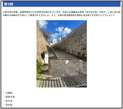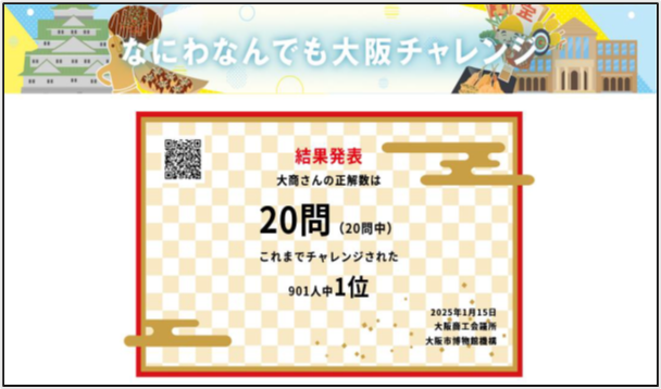 同クイズは専用サイトに、「なにわなんでも大阪検定」(2009~2022年度実施、主催:大商)の過去問題や機構の学芸員が作成した問題を掲載し、楽しみながら大阪について学んでもらうもの。2023年度に開始し、これまでに47都道府県から延べ54,370人が参加した。