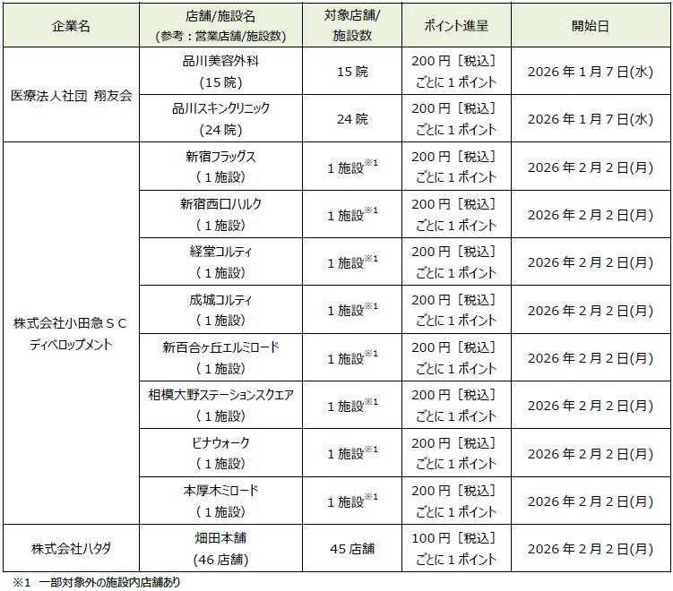 * 記載の店舗/施設数は、発表日現在の店舗/施設数となります。