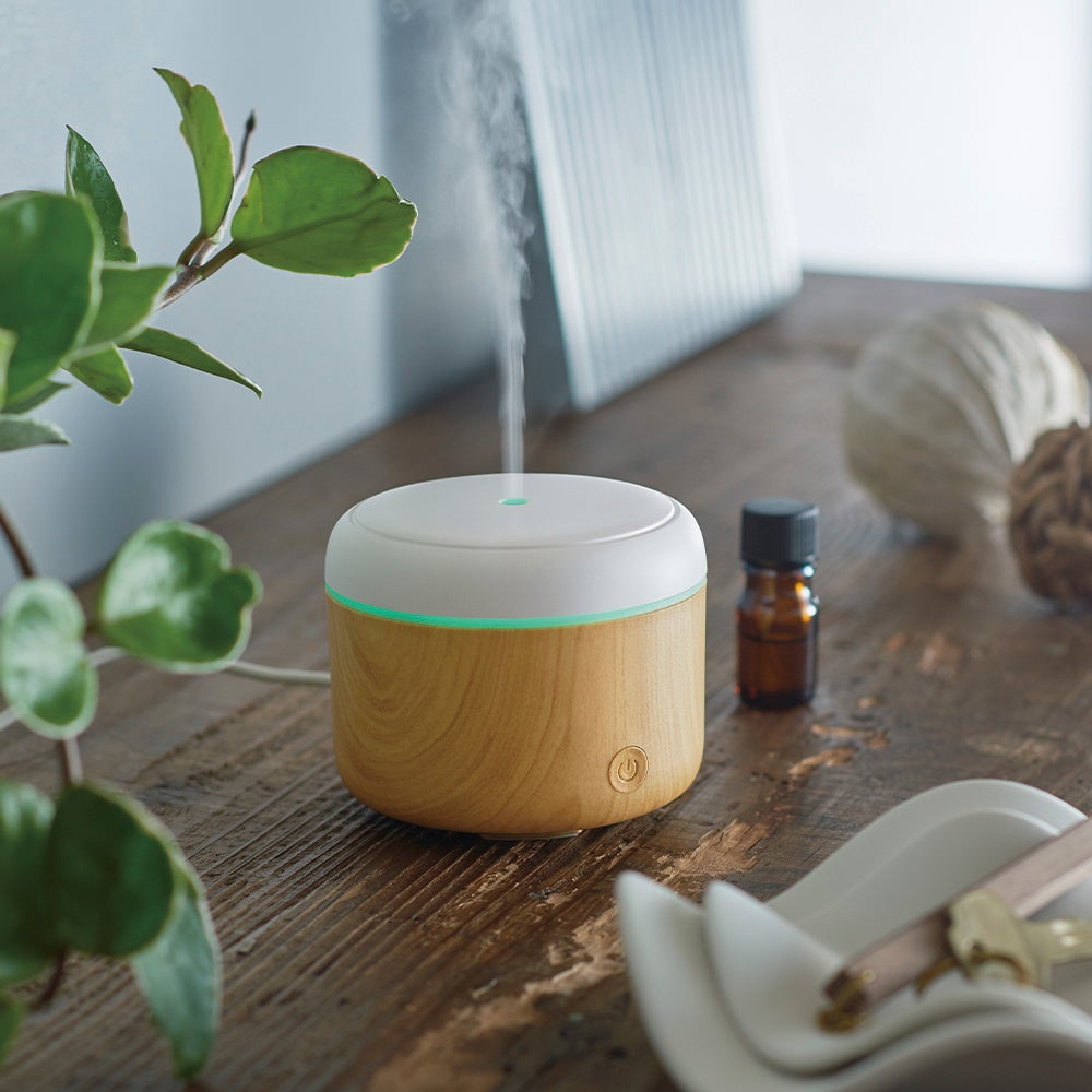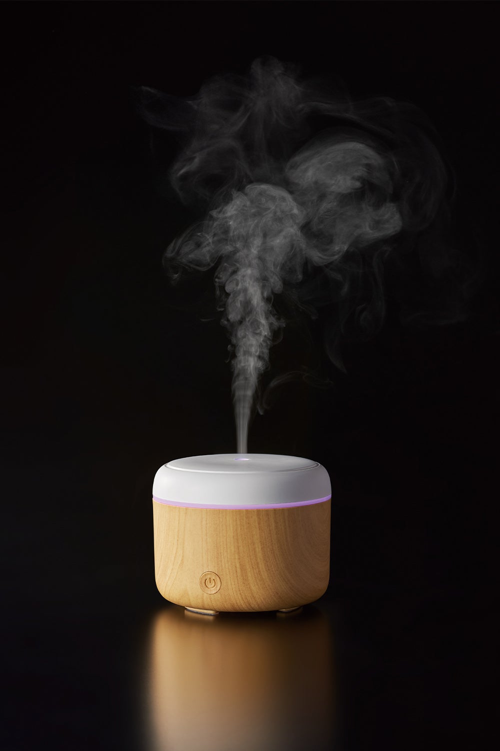 ミストとともに香りが広がる超音波式アロマディフューザー。アロマオイルを入れた水を振動させてミスト化することで、アロマオイル本来の優しい自然な香りを楽しむことができます。