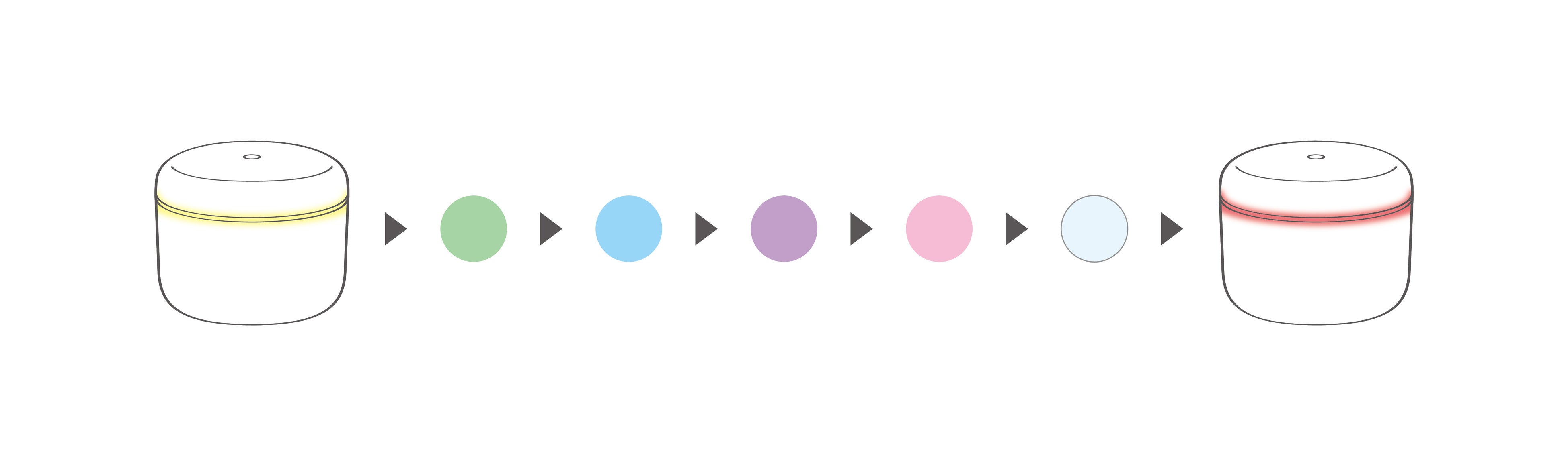 グラデーションLEDライト搭載で、インテリアとしてもお楽しみいただけます。香りに加え、優しい光でパーソナルスペースを癒しの空間に。お好みの色で固定も可能です。
