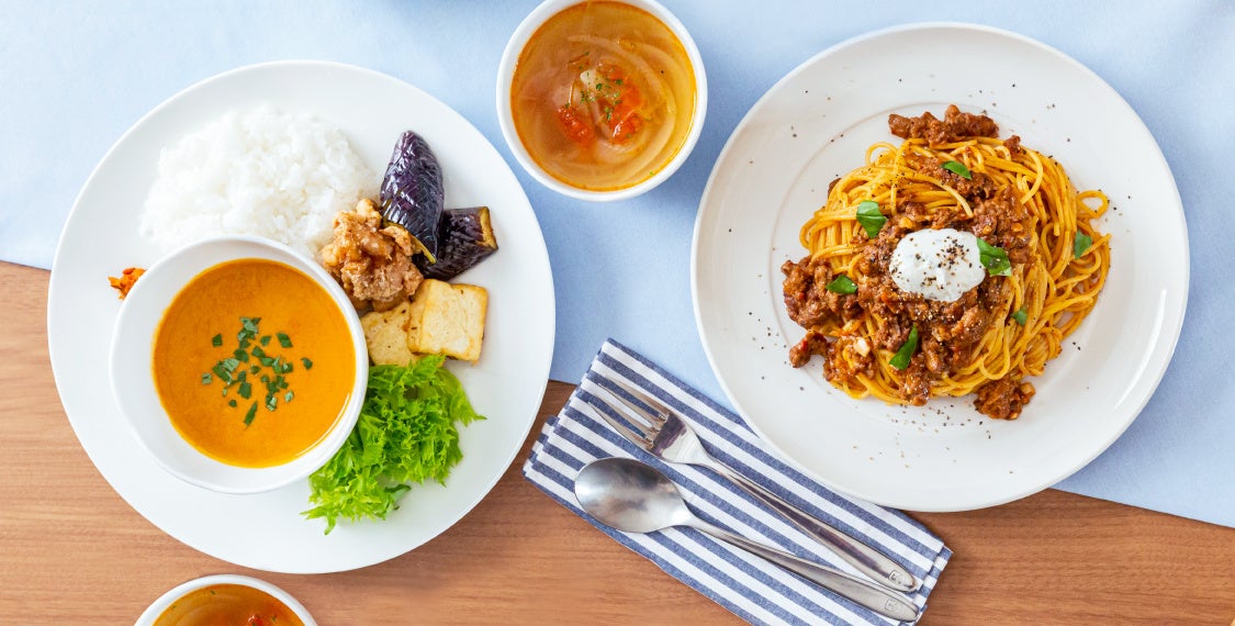 メインのおかずには、人気の「揚げ鶏のねぎソース」に加え、ピリッと山椒を効かせた、枝豆の香りと食感を楽しめる「枝豆つくねの和風あんかけ」と、しょうがの効いたサバのみそ煮にクリームを加え、洋風に仕上げた「サバのみそクリームソース」が登場します。また、セットの副菜には旬の食材を使用し、彩り豊かなランチメニューをお楽しみいただけます。