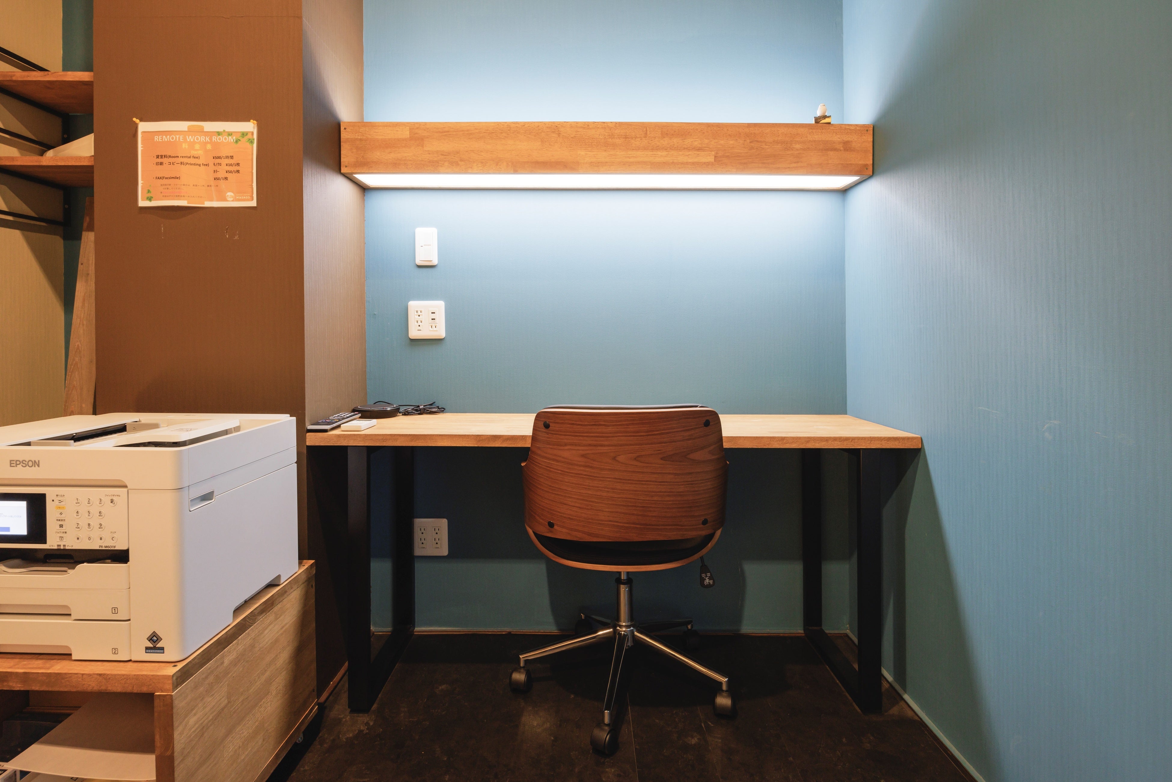 また、ふたつの住宅から近いコワーキング「MASAGO」(写真下)には、オープンスペースの他に個室スペースも設けられています。プリンタも設置されていて、書類の印刷にも便利です。