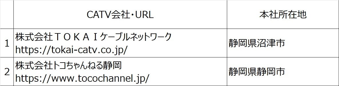 【新規に対象となるCATV会社一覧】
