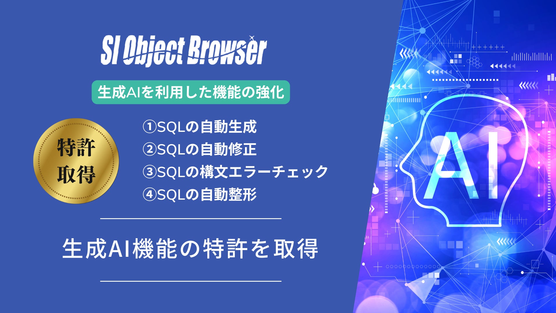 データベース開発ツール「SI Object Browser」が生成AI機能の特許を取得