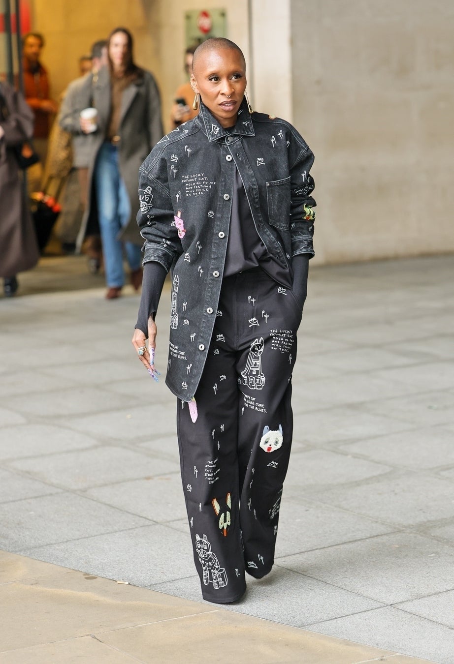 2025年11月10日、イギリス・ロンドンのBBCラジオスタジオで開催された《ウィキッド 永遠の約束》のプロモーションイベントにて、俳優のシンシア・エリヴォがロエベを着用しました。