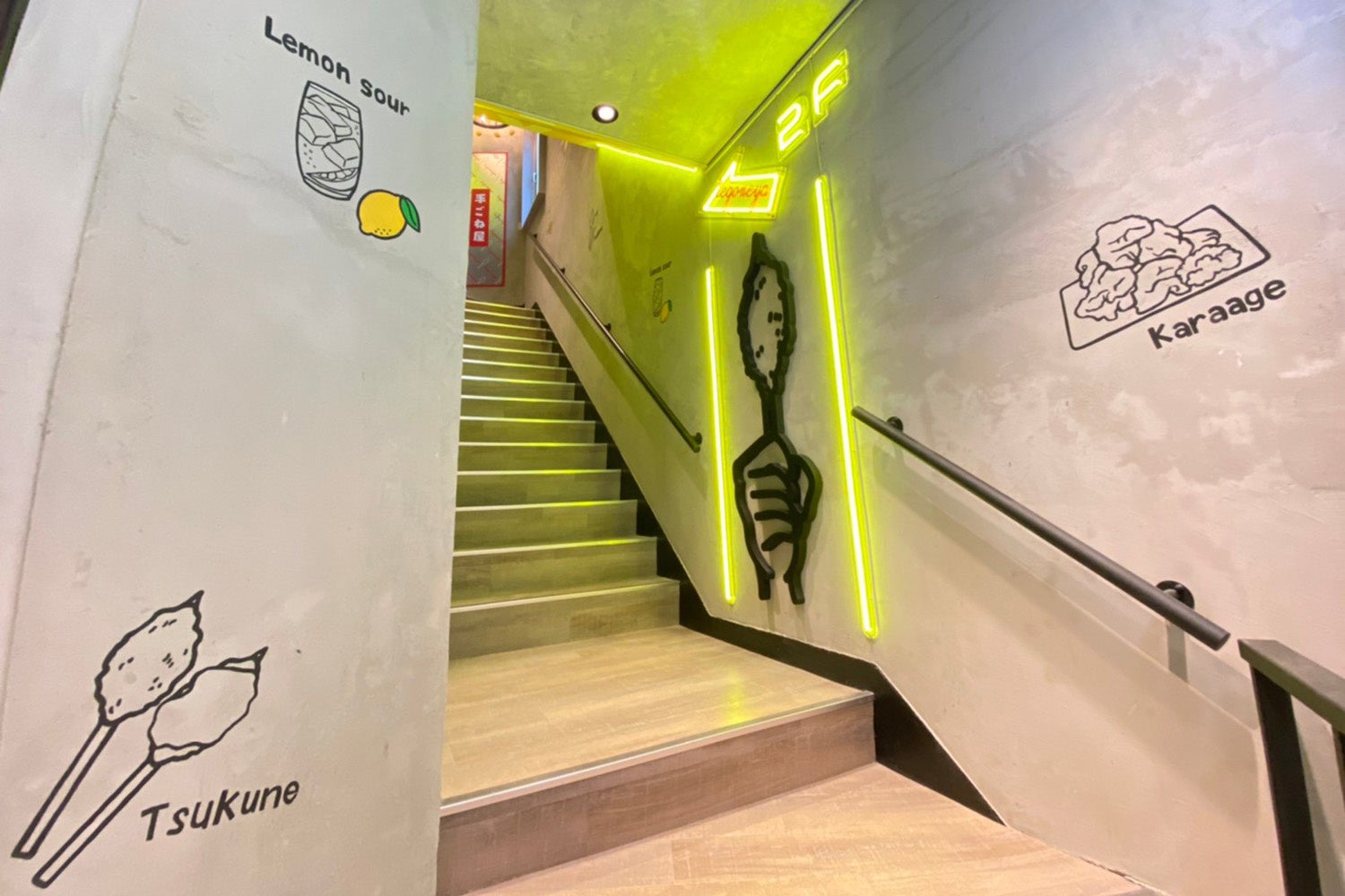 自由が丘駅北口から徒歩1分。2階のカワイイつくねのネオン看板が目印