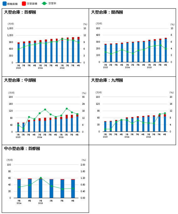 ※1 中小型倉庫については、本レポートより、一般社団法人 日本倉庫マスターリース協会の協会員企業が管理する倉庫物件データを用いて空室率を算出しています。なお、前Q分についても同データに基づき再算出しています。