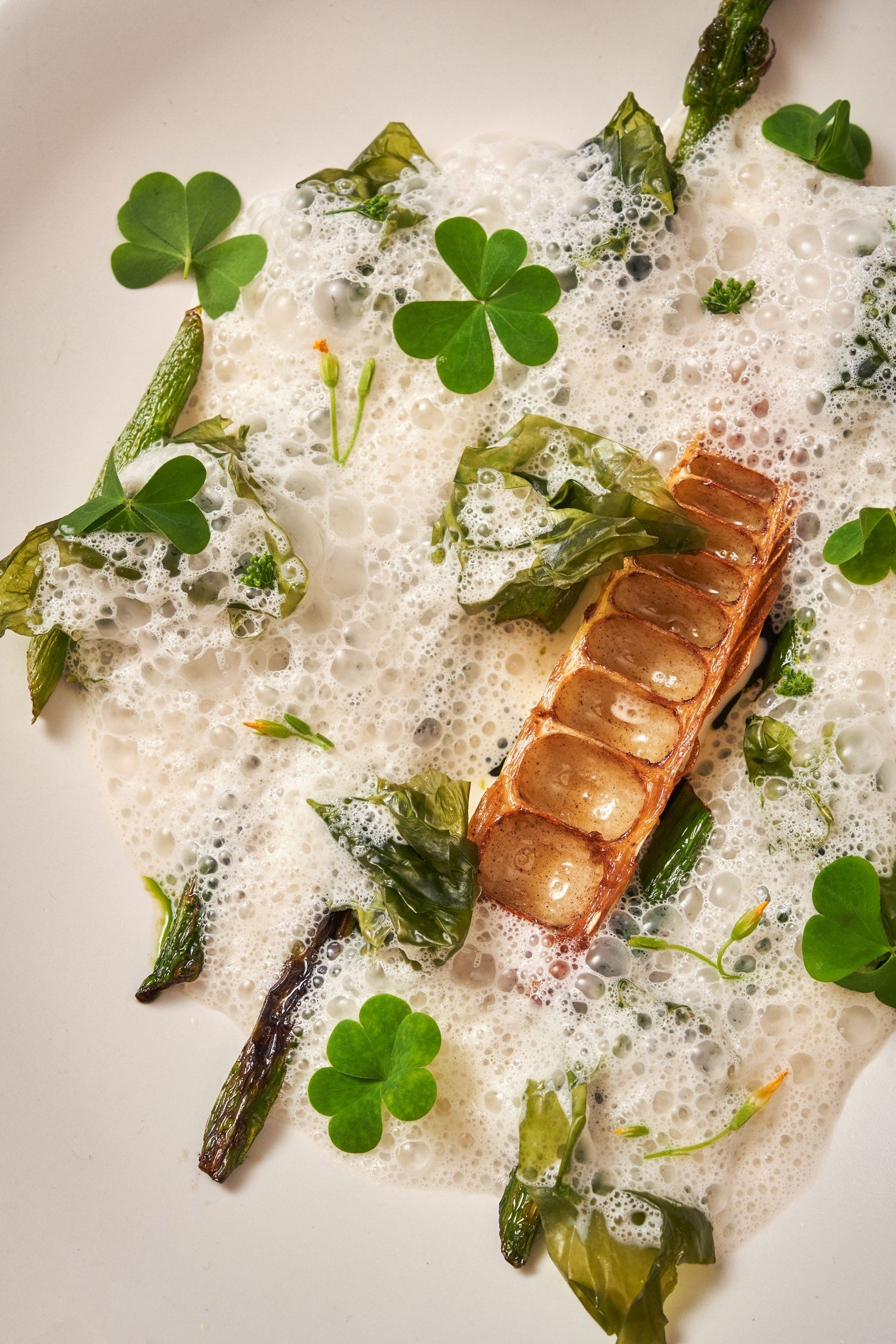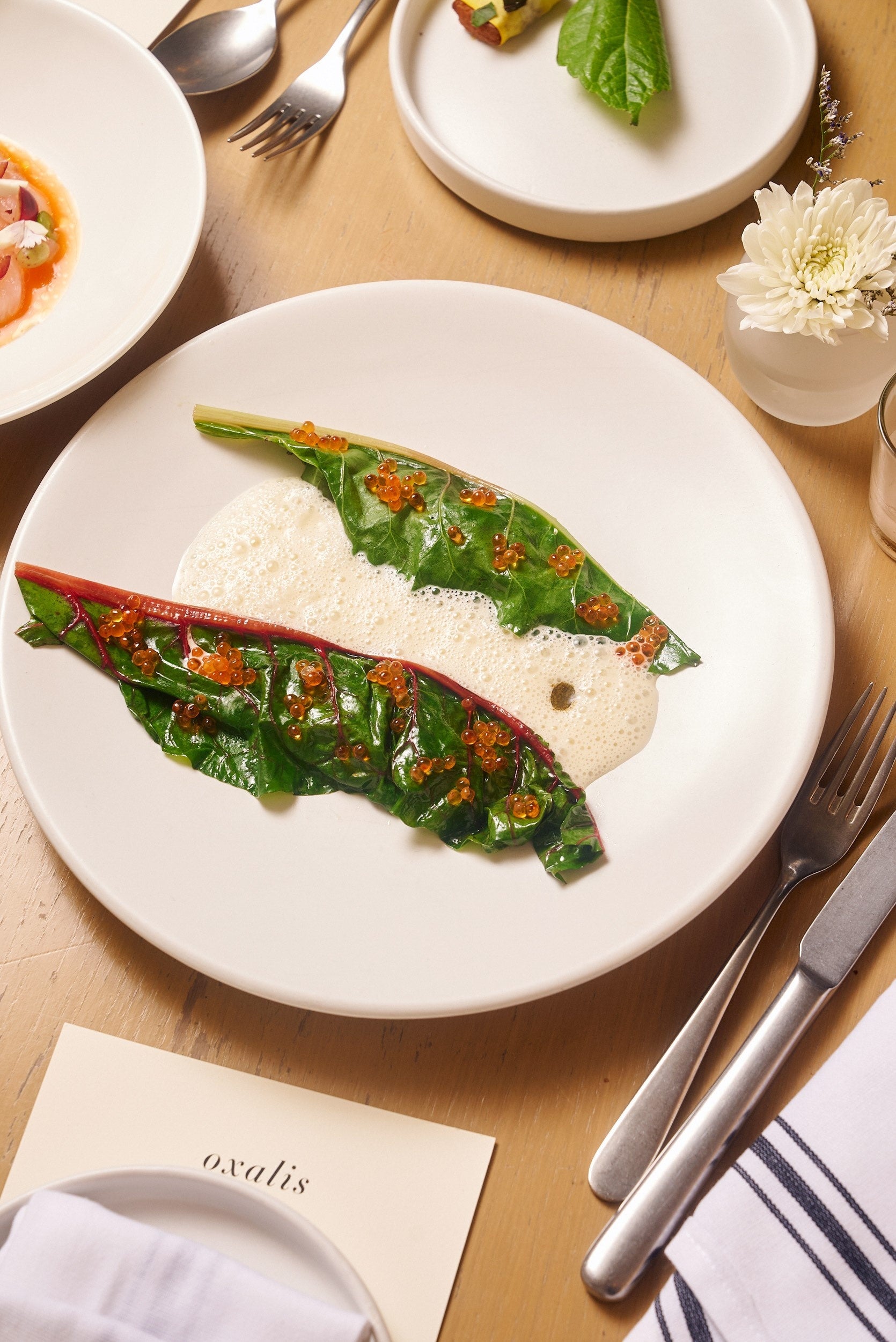 2016年にニューヨークへ戻り、ポップアップスタイルで自身のオリジナリティを発揮し始めた彼は、2年間で30回以上の個性豊かなディナーイベントを主催し、地元で愛読される「Gothamist」や「Thrillist」で高く評価されるまでに。2018年12月、満を持して「Oxalis(オキザリス)」をブルックリン美術館至近にオープンすると、2019年にはStarChefsによる“Rising Star Chef”に選抜され、またたく間にミシュラン一つ星を受賞。現在に至るまで連続して獲得し、レストランとしても強固なステイタスを築いています。