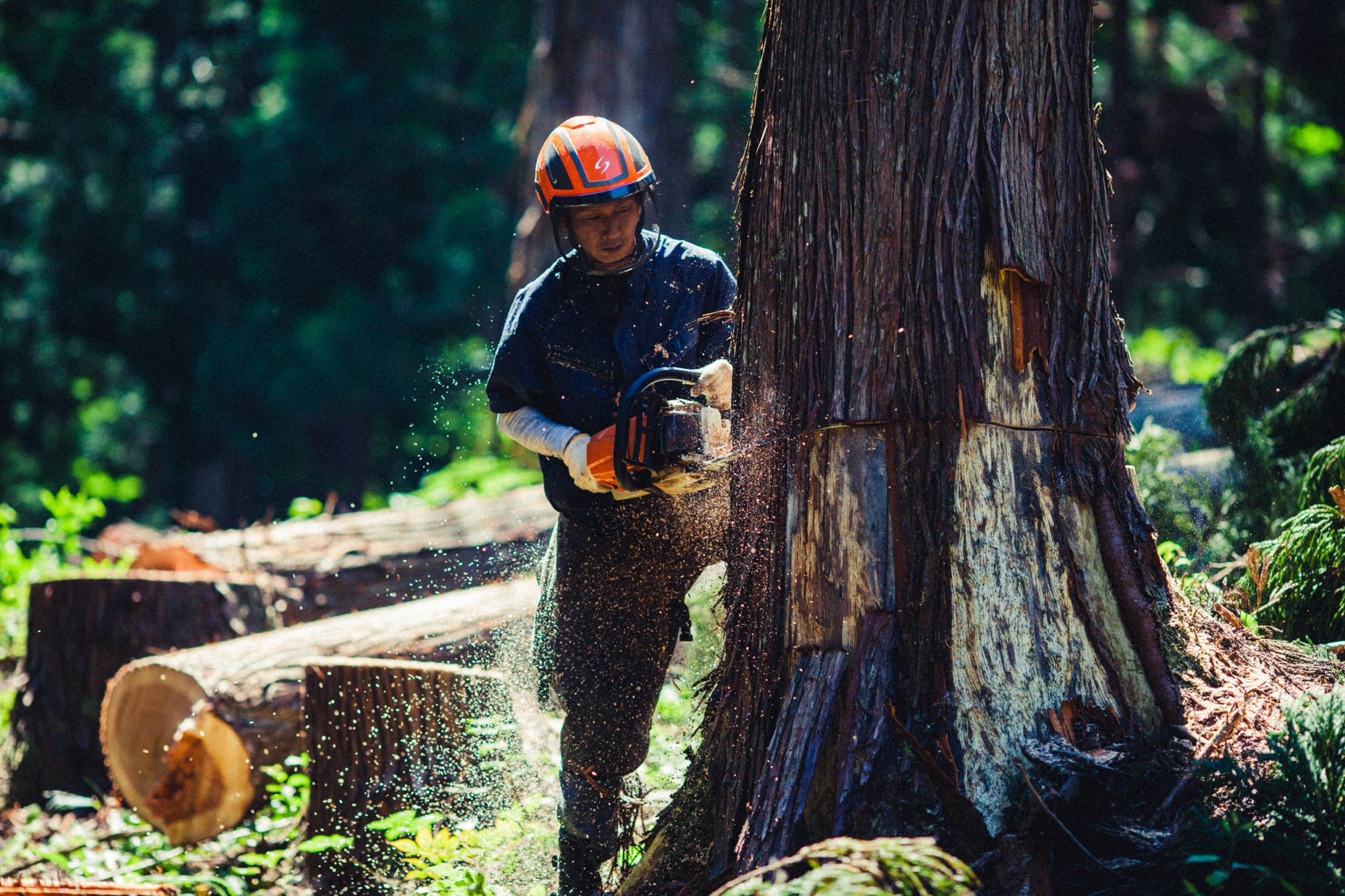 また、地元小学校にて「木や山」を知ってもらうための授業を行い、森林に関する座学や丸太を切る体験を提供するなど、地域と林業を繋ぐ活動も盛んです。