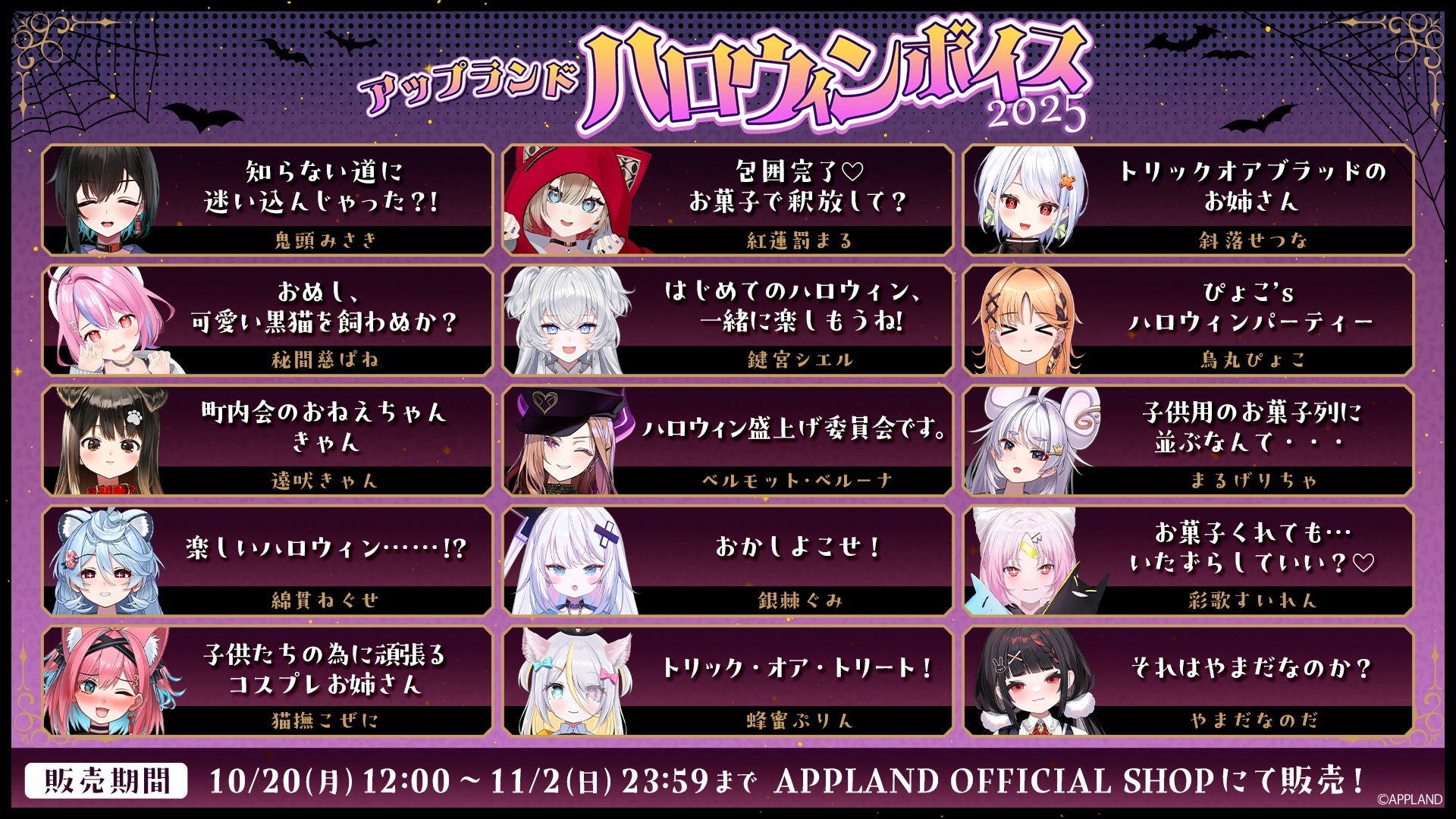 アップランド所属「.LIVE」・「ぶいぱい」メンバー合計6名の『アップランドハロウィングッズ2025』を10月20日(月)より販売開始!さらに同テーマのボイスも併せて販売いたします!