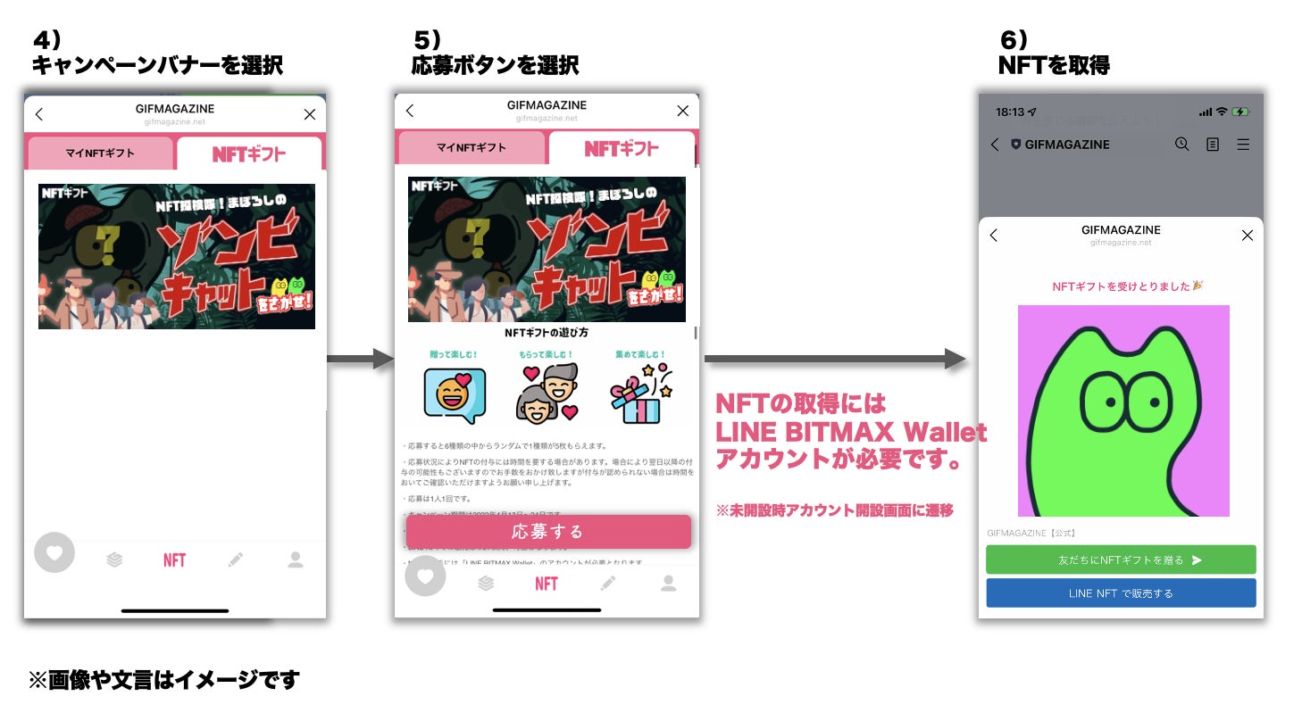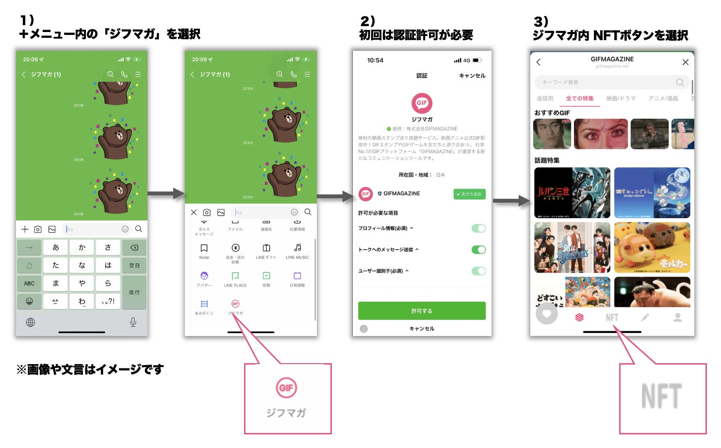 ・「NFTギフト」はGIFMAGAZINEが運営する、LINEミニアプリ「ジフマガ」内の機能です。