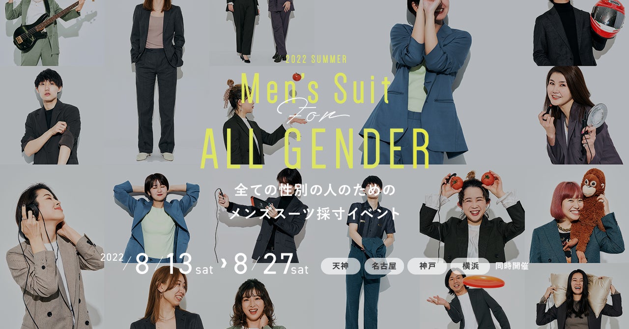 株式会社FABRIC TOKYO(本社:東京都渋谷区、代表取締役CEO:森 雄一郎)は、2022年8月13日から8月27日の間、性別を問わずメンズパターンのオーダースーツをご注文いただける期間限定イベント「Men’s Suit for ALL GENDER」を横浜、名古屋、神戸、福岡のFABRIC TOKYOにて同時開催いたします。