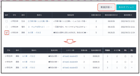 ⇒生徒の視聴状況を動画別集計で確認して、宿題管理を効率化。