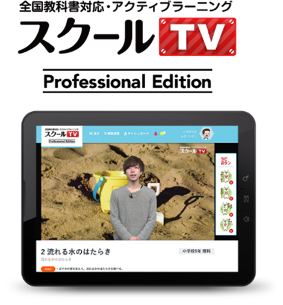 「スクールTV」は、「学習習慣の定着」を目的とし、全国の主要科目の教科書内容を網羅した小・中学生向けの動画教育サービスです。約1,000本の教科書に対応した授業動画を配信し、自ら能動的に学習する「アクティブ・ラーニング」のメソッドを日本で初めて動画内に導入しています。