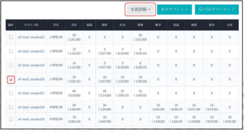 ⇒先生は「生徒別集計」で各生徒の合計視聴時間を確認することで、宿題管理を効率化。