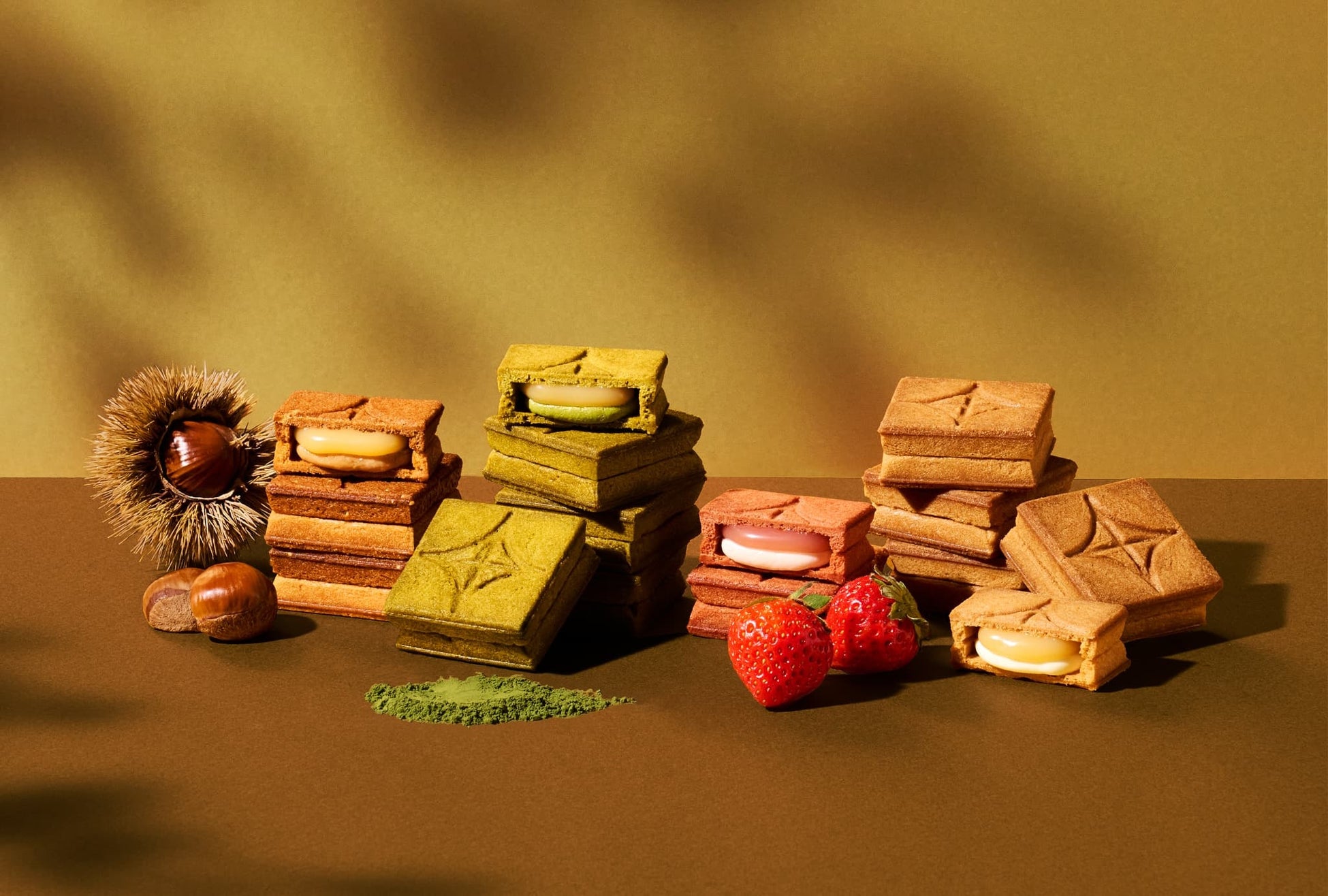 クッキーは和菓子の「はさみ焼き」の技術で焼き上げる事で余分な油分を抜き、食感と風味のベストバランスを実現。材料もシンプルに、バター本来の風味を生かしたバタークリームとバターキャラメルをサクサクのクッキー生地に挟んだ、2層仕立てに仕上げています。