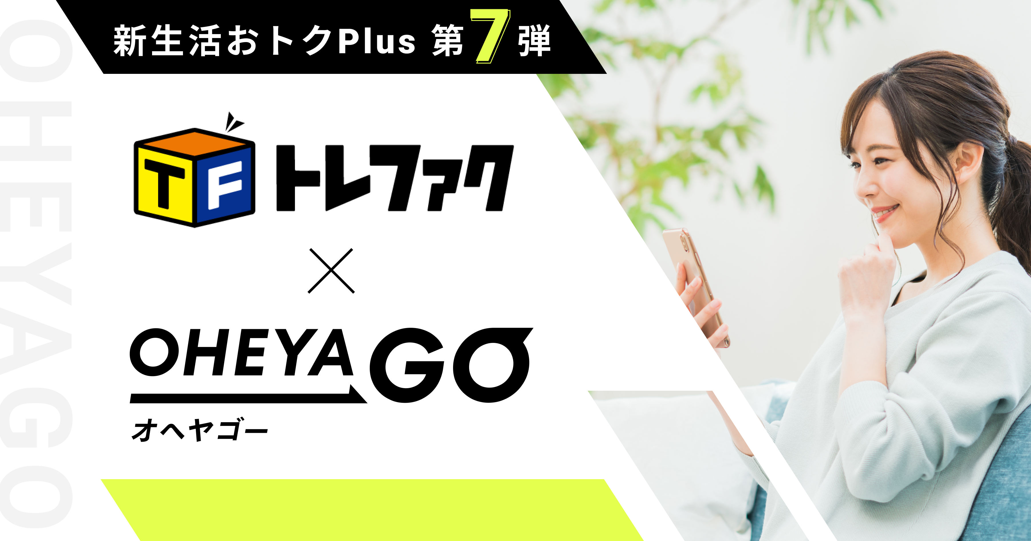 ネット不動産賃貸サービス「OHEYAGO (オヘヤゴー) 」は、新生活をスタートする方をサポートする優待サービス『OHEYAGO 新生活おトクPlus(https://oheyago.jp/otokuplus/)』を提供しています。その第7弾として、引越しをする方に、トレジャー・ファクトリーが提供する、不用品買取サービス「トレファク宅配買取」で、不用品買取の査定額を10%アップする優待サービスをご提供いたします。